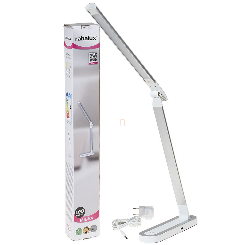 Bontott csomagolású Telefontöltős asztali LED lámpa 40cm - Misha Rábalux 3349, USB, 4000 K, 400 lm, 7 W