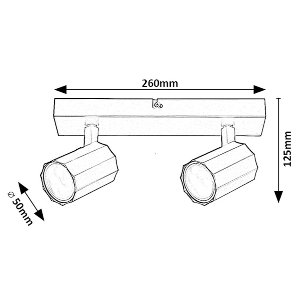 A Rogelio Rábalux 73024 bordázott spot lámpa két GU10 foglalattal rendelkezik, amelyekbe cserélhető fényforrások helyezhetők. A lámpatest matt fekete színű, anyaga fém és alumínium, így tartós és modern megjelenést biztosít. A termék 230 V névleges feszültséggel működik, védettségi szintje IP20, amely beltéri használatra teszi alkalmassá. A lámpa hossza 260 mm, magassága 125 mm, össztömege 0,443 kg. A fényforrás nem tartozék, így a fényáram, fényszín, színhőmérséklet és teljesítmény a választott izzótól függ. A termék logisztikai kódja 73024, gyártója a Rábalux.