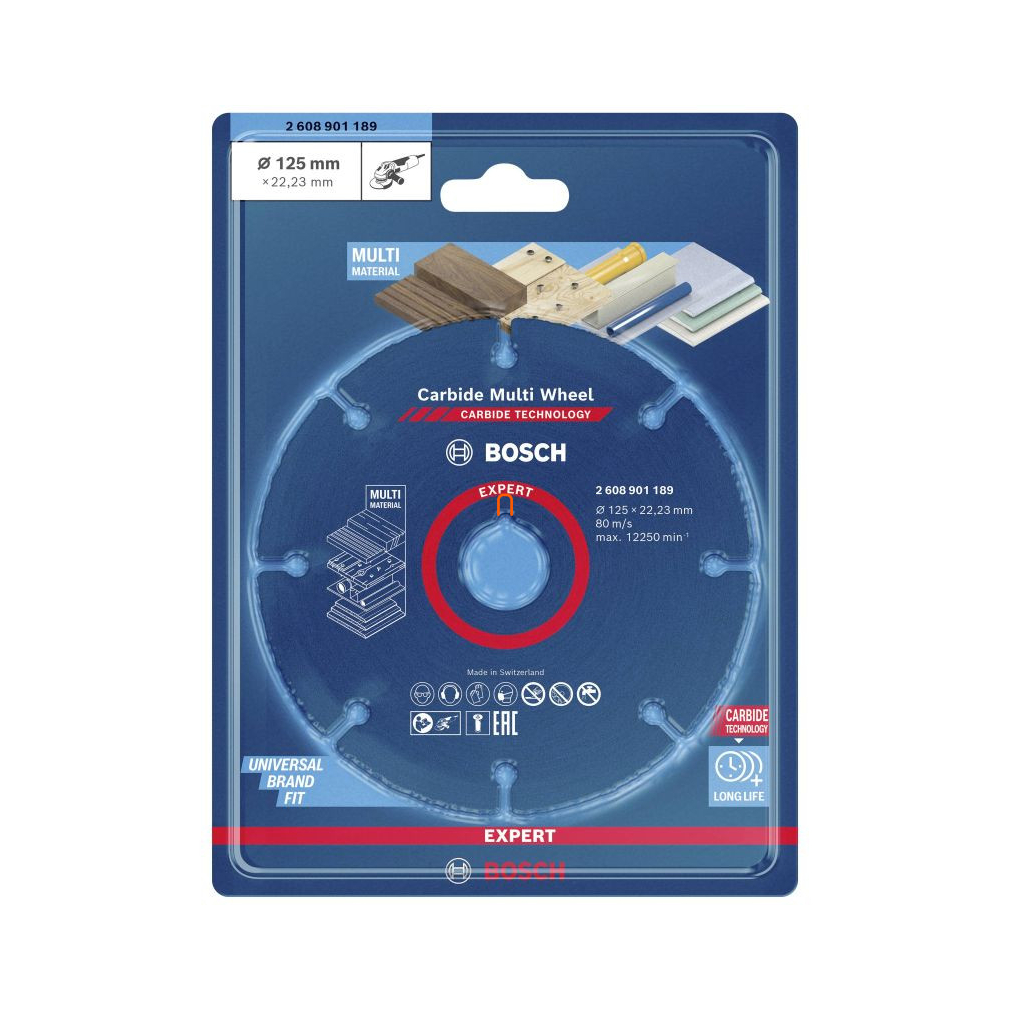 Bosch vágótárcsa 125mm Karbid Multi Wheel (2608901189) Megmunkálható anyagok: fa, vastartalmú fémek, alumínium lemez, műanyag