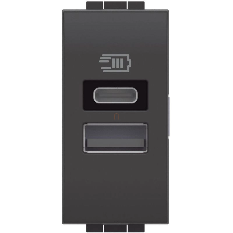 BTICINO L4191AC LL - USB töltőaljzat (15W - type: A+C), 1m, antracit