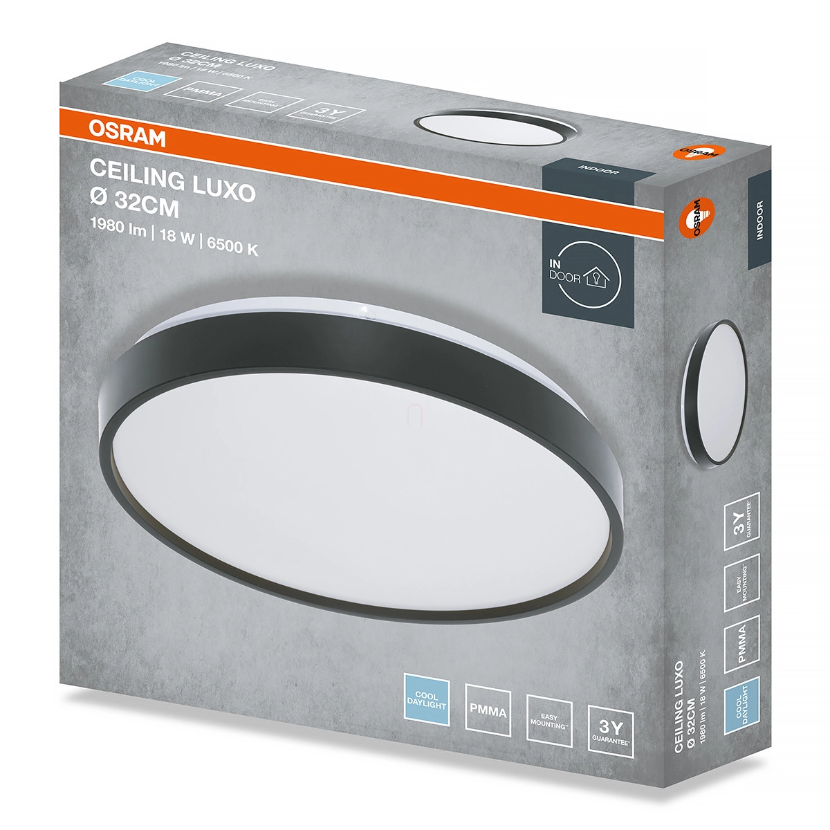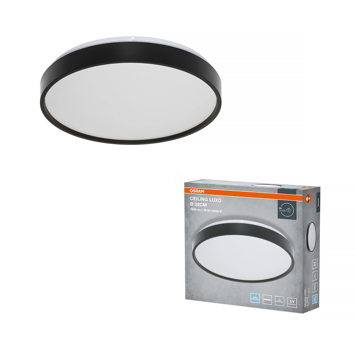 Osram Ceiling Luxo mennyezeti LED lámpa, 32 cm, 18 W, 6500 K, 990 lm, fekete színben