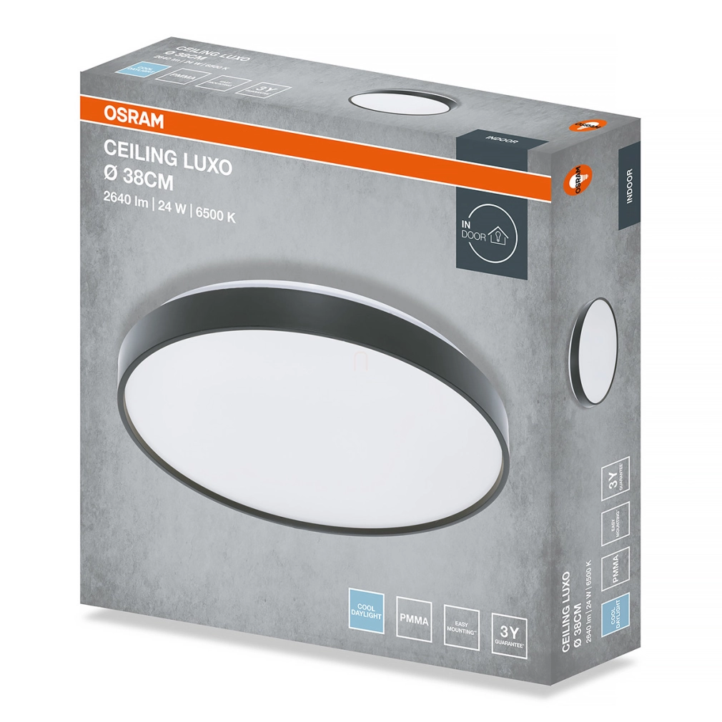Osram Ceiling Luxo mennyezeti LED lámpa, 38 cm, 24 W, 6500 K, 1320 lm, fekete színben