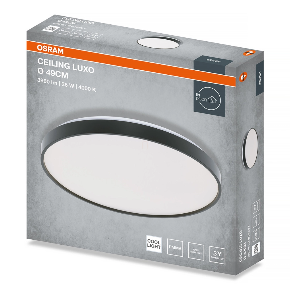 Osram Ceiling Luxo mennyezeti LED lámpa, 49 cm, 36 W, 4000 K, 1980 lm, fekete színben