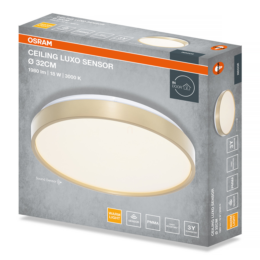 Osram Ceiling Luxo Sensor mennyezeti LED lámpa hang és fényérzékelővel, 32 cm, 18 W, 3000 K, 990 lm, arany színben