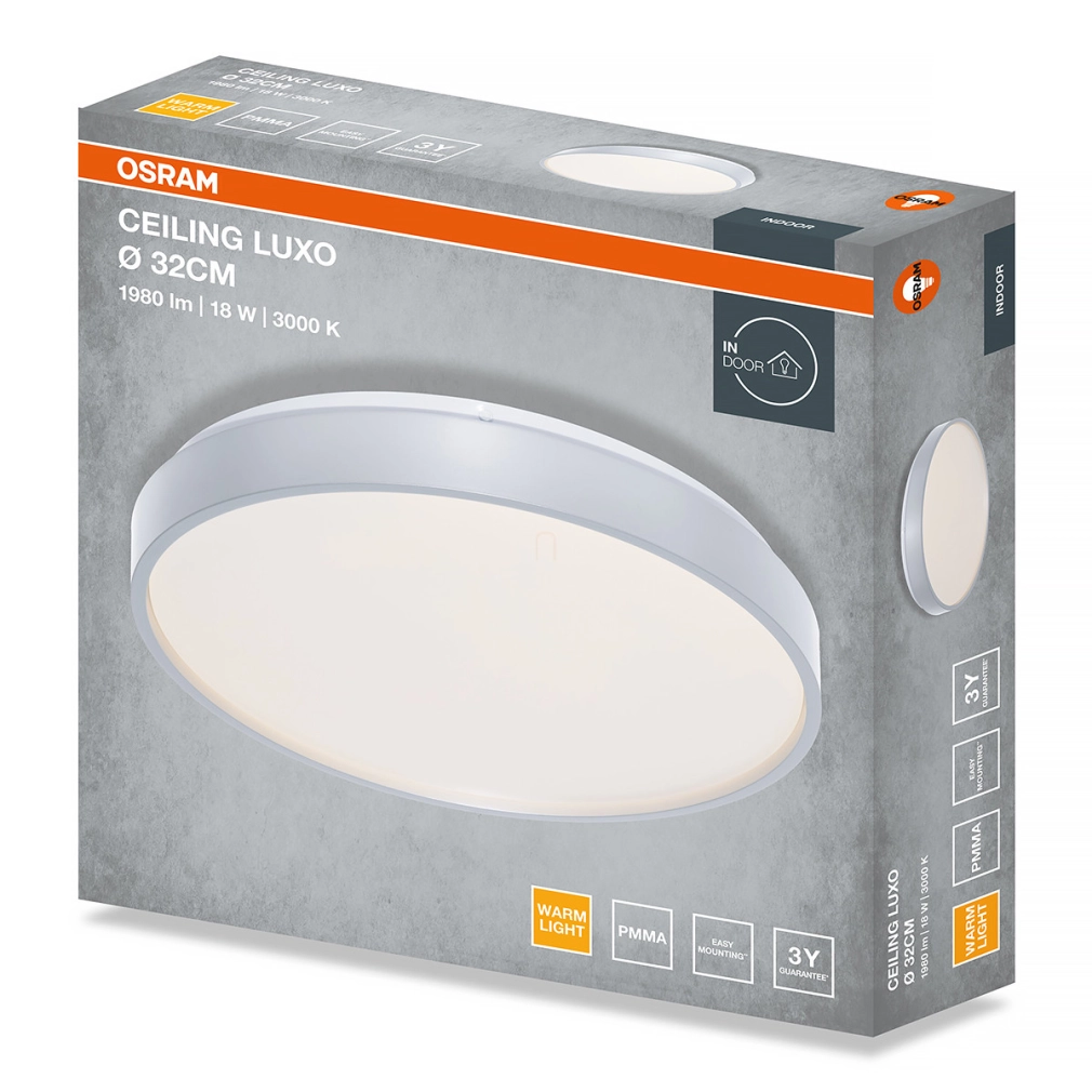 Osram Ceiling Luxo mennyezeti LED lámpa, 32 cm, 18 W, 3000 K, 990 lm, ezüst színben
