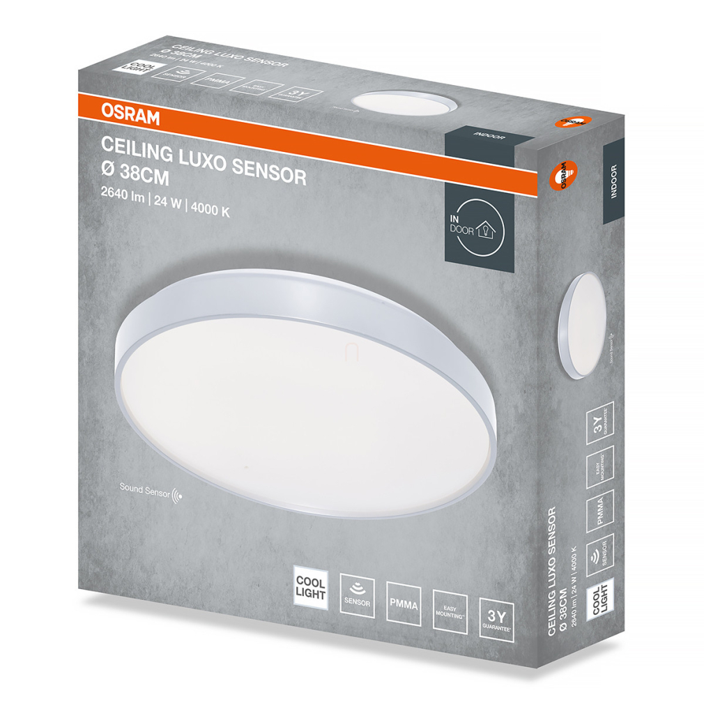 Osram Ceiling Luxo Sensor mennyezeti LED lámpa hang és fényérzékelővel, 38 cm, 24 W, 4000 K, 1320 lm, ezüst színben