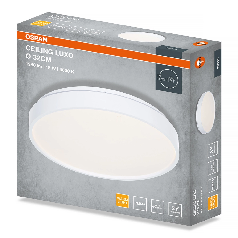 Osram Ceiling Luxo mennyezeti LED lámpa, 32 cm, 18 W, 3000 K, 990 lm, fehér színben