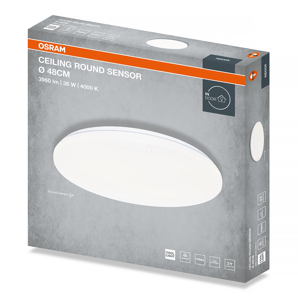 Osram Ceiling Round Sensor mennyezeti LED lámpa hang és fényérzékelővel, 48 cm, 36 W, 4000 K, 2880 lm, matt fehér színben