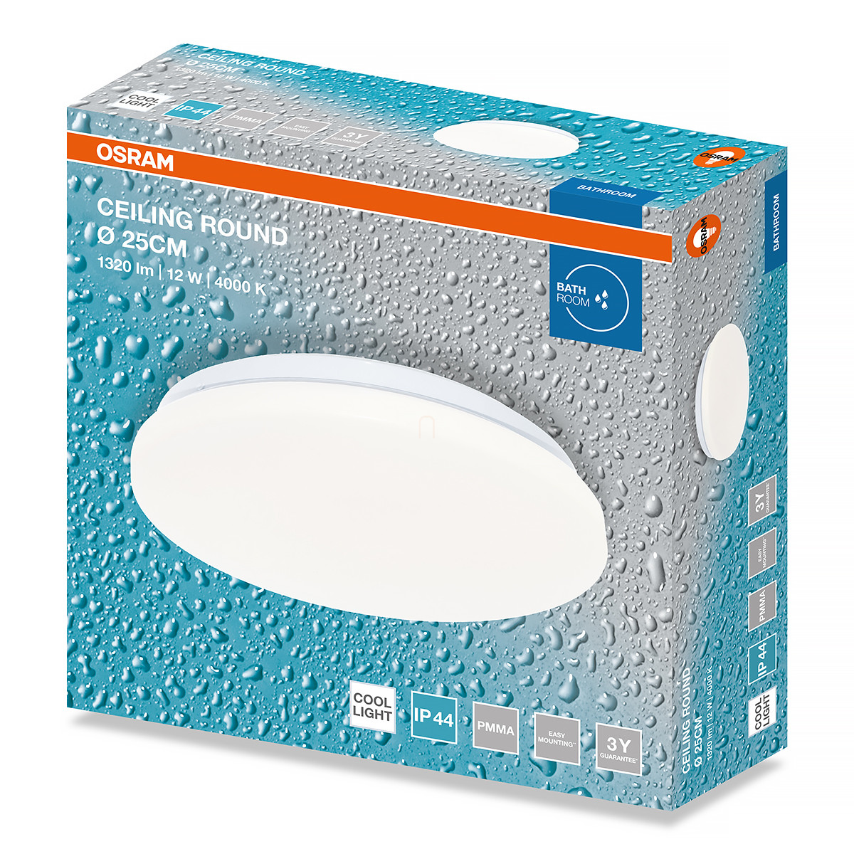 Osram Ceiling Round fürdőszobai mennyezeti LED lámpa, 26 cm, 12 W, 4000 K, 960 lm, matt fehér színben