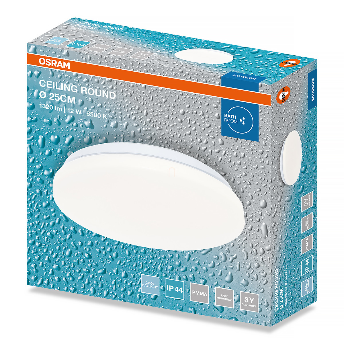 Osram Ceiling Round fürdőszobai mennyezeti LED lámpa, 26 cm, 12 W, 6500 K, 960 lm, matt fehér színben