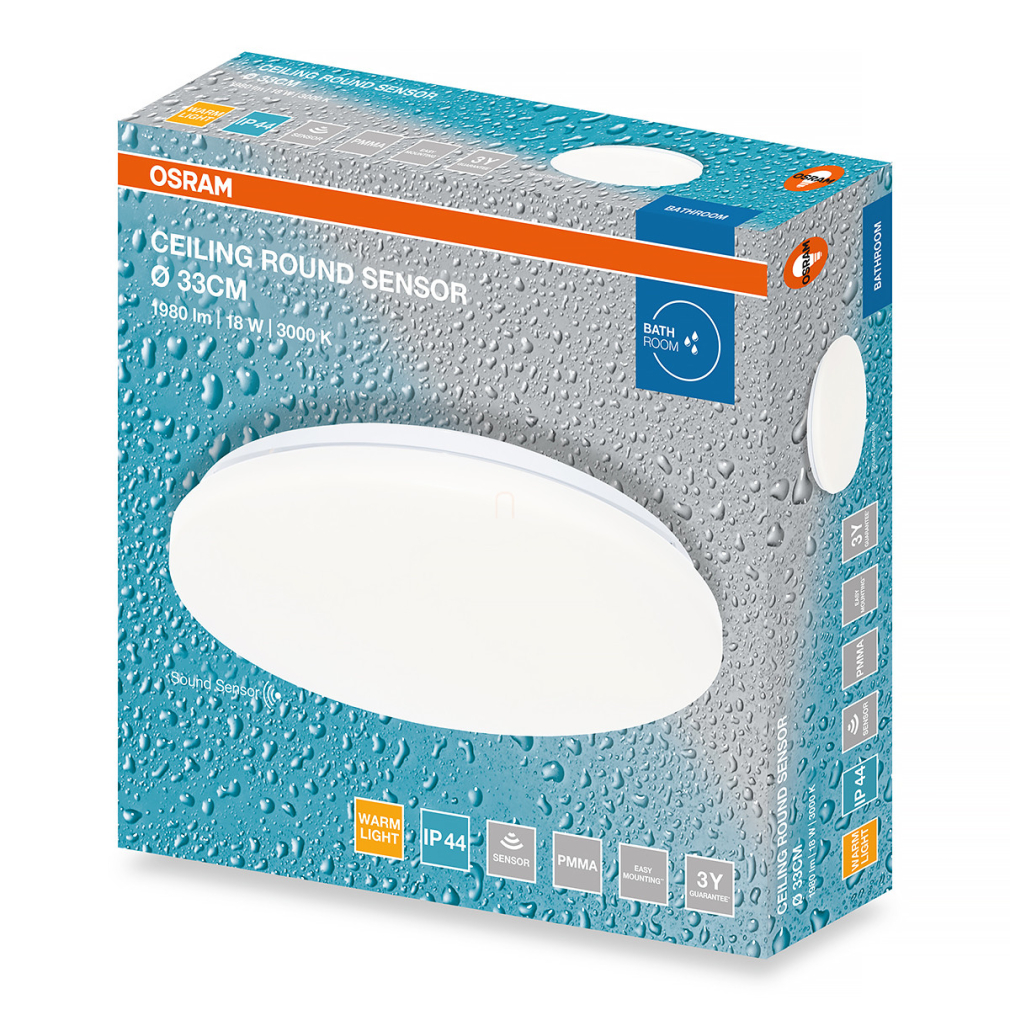 Osram Ceiling Round Sensor fürdőszobai mennyezeti LED lámpa hang és fényérzékelővel, 33 cm, 18 W, 3000 K, 1440 lm, matt fehér színben