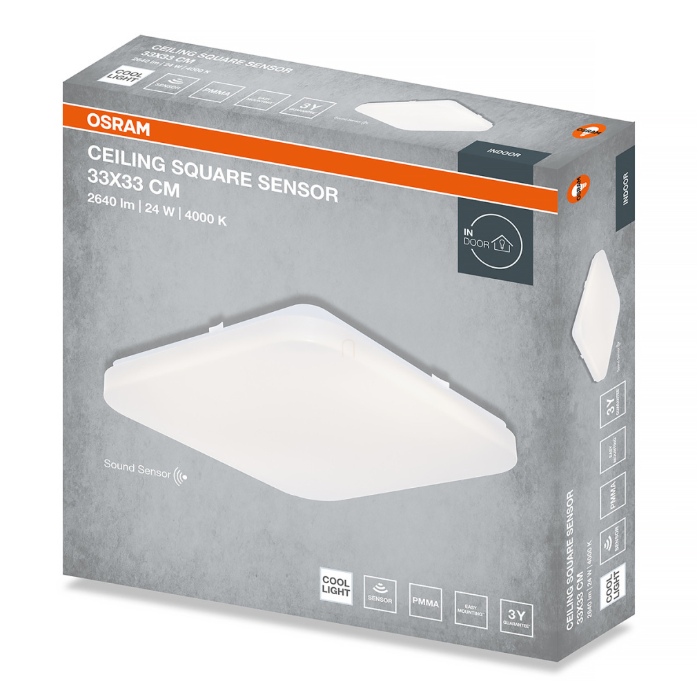 Osram Ceiling Square Sensor mennyezeti LED lámpa hang és fényérzékelővel, 33x33 cm, 24 W, 4000 K, 1920 lm, matt fehér színben