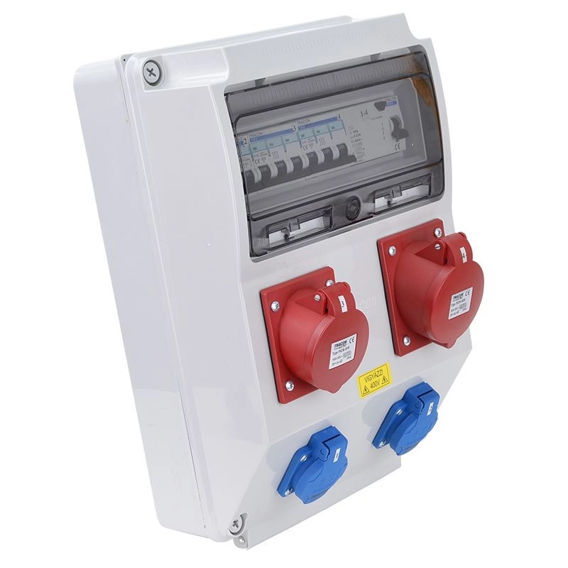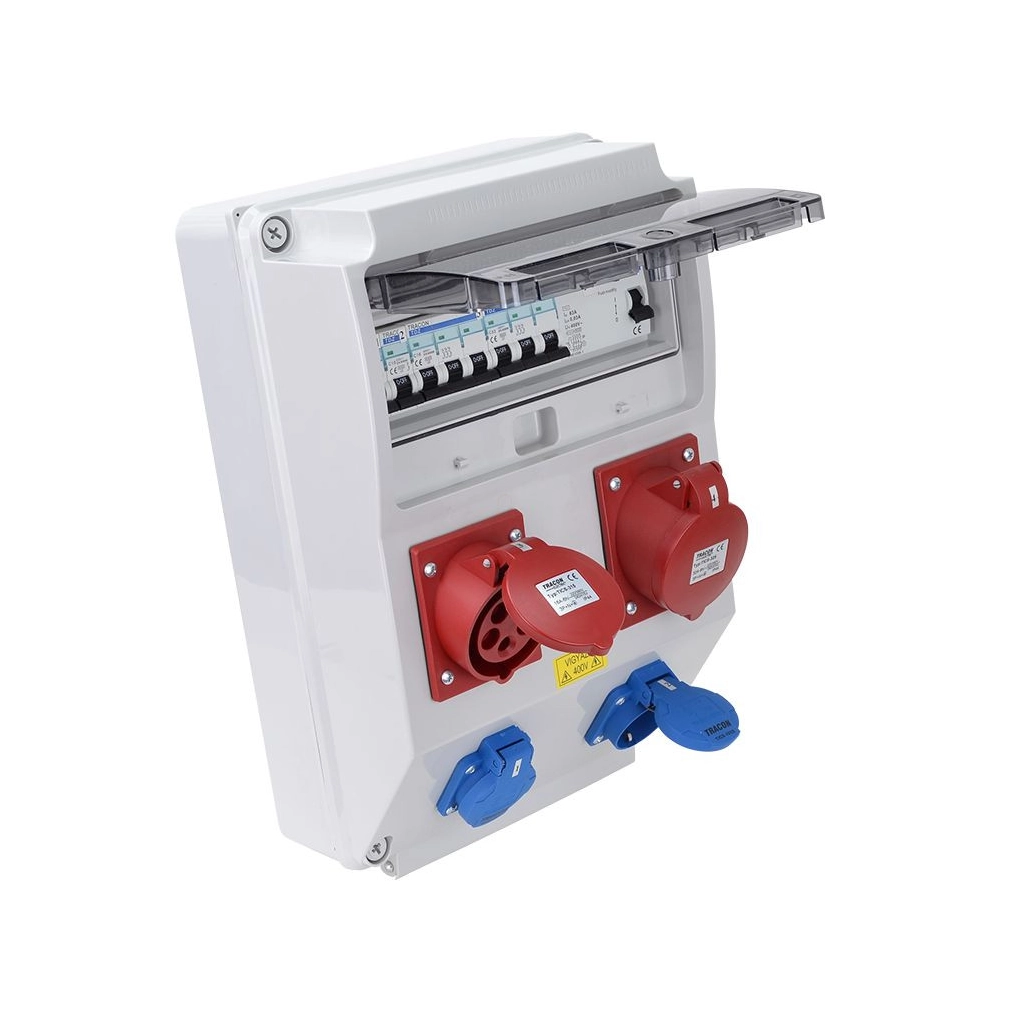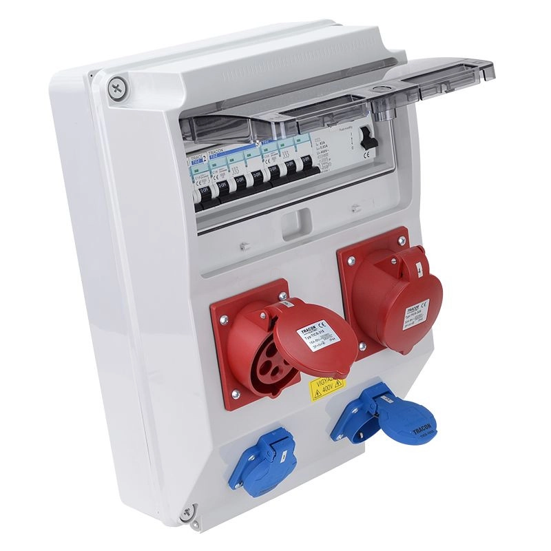 Csatlakozó doboz védelemmel, vezetékezett, 2×FRENCH+1×32A 5Pólus+1×16A 5Pólus, TDB12-12MVSK Tracon
