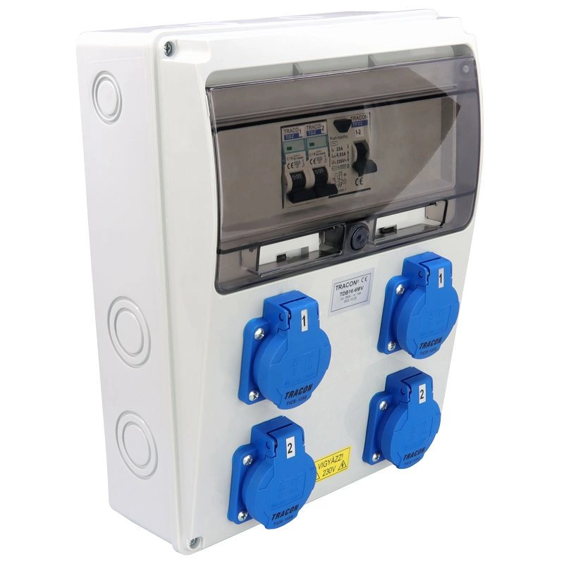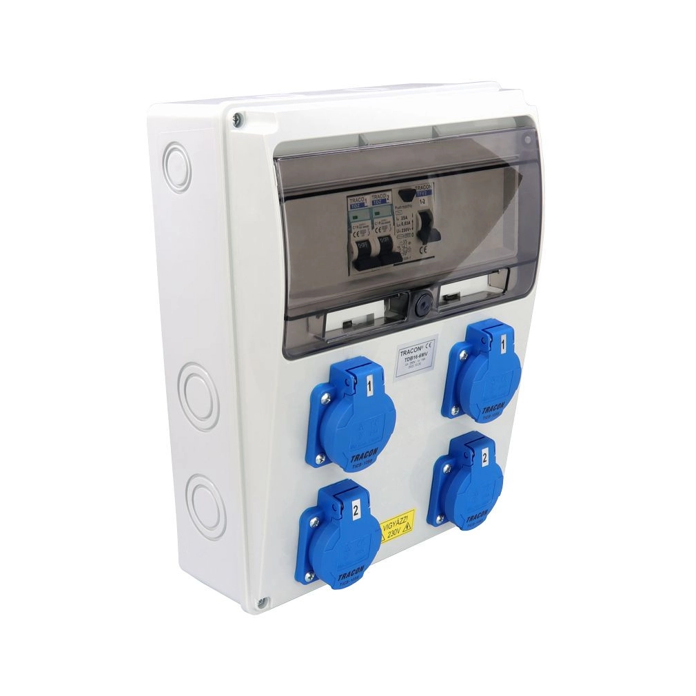 Csatlakozó doboz védelemmel, vezetékezett, készre szerelt 4×SCHUKO TDB16-6MV Tracon