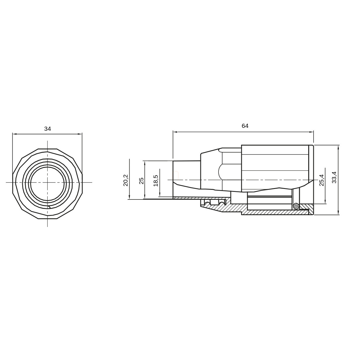 Csatlakozó Mü.II. 25 cső és 20-as DIFLEX gégecső összekötésére IP65 DX43325 Gewiss