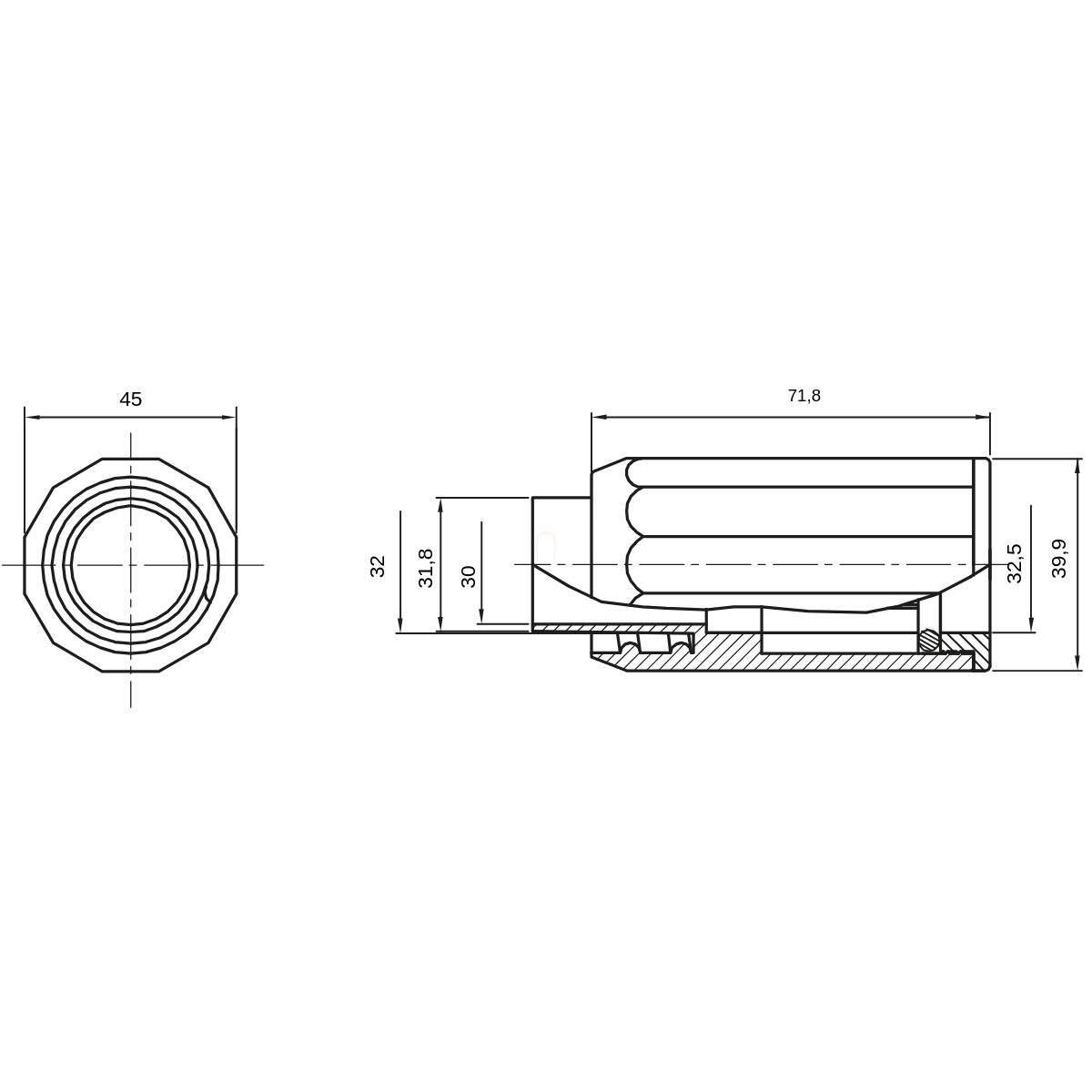 Csatlakozó Mü.II. 32 cső és 32-es DIFLEX gégecső összekötésére IP65 DX43432 Gewiss