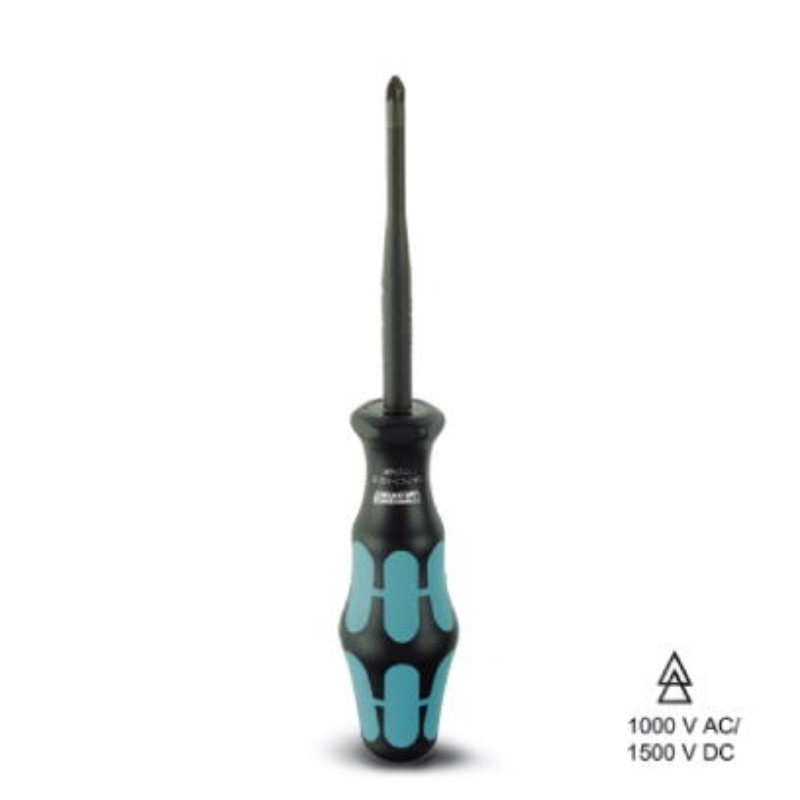 csavarhúzó, kereszthornyos PZ (lézerrel kezelt), szigetelt, méret: PZ 2 x 100, kétkomponensű markolat, csúszásmentes