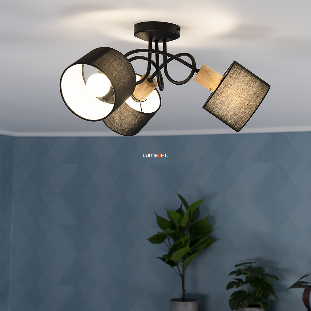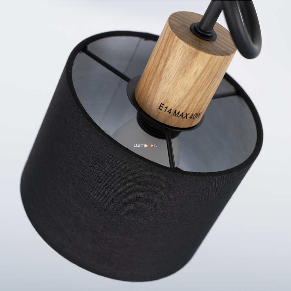 A lámpa IP20-as védettséggel rendelkezik, ami azt jelenti, hogy kizárólag beltéri használatra alkalmas, és nem védett a nedvesség ellen. Ezért nem ajánlott fürdőszobákban vagy más, magas páratartalmú helyiségekben történő alkalmazása. A lámpa felszerelése egyszerű, azonban a biztonság érdekében javasolt szakember segítségét igénybe venni a telepítés során. A lámpafejek állíthatóak, így a fény irányát igényeid szerint módosíthatod, lehetővé téve a helyiség különböző részeinek célzott megvilágítását.A lámpa modern és letisztult dizájnja mellett a funkcionalitásra is nagy hangsúlyt fektet. A fémből, fából és textilből készült szerkezet tartósságot és hosszú élettartamot biztosít, míg a fa és fekete színkombináció elegáns megjelenést kölcsönöz. A textil búrák és a csavart fém karok harmonikus összhangot teremtenek, ami könnyedén illeszkedik a különböző belsőépítészeti stílusokhoz.A lámpa kompatibilis a különböző típusú E14-es fényforrásokkal, beleértve a LED izzókat is, amelyek energiatakarékosak és hosszú élettartamúak. Ez lehetőséget ad arra, hogy csökkentsd az energiafogyasztást és a karbantartási költségeket, miközben biztosítod a megfelelő fényerőt és hangulatot a helyiségben.A Miguel csavart karos, három foglalattal rendelkező spotlámpa egy sokoldalú és esztétikus világítótest, amely kiválóan alkalmas különböző beltéri helyiségek megvilágítására. A minőségi anyaghasználat, az állítható lámpafejek és a modern dizájn mind hozzájárulnak ahhoz, hogy otthonodban kellemes és funkcionális világítást biztosíts.