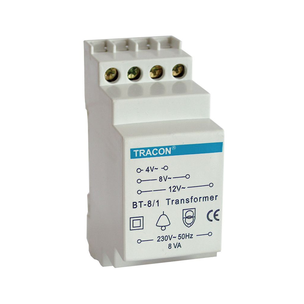 Tracon csengő transzformátor sínre 4-8-12V AC BT-8/1