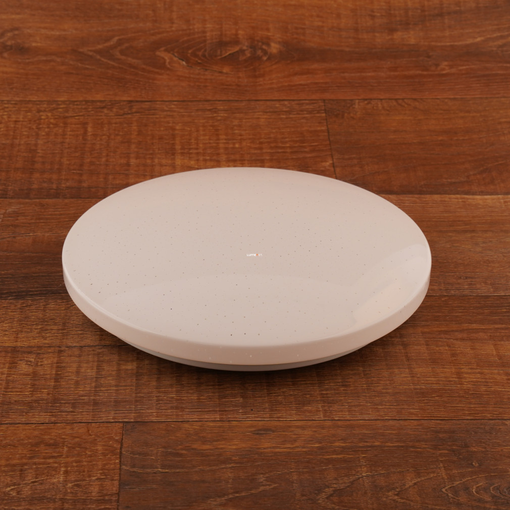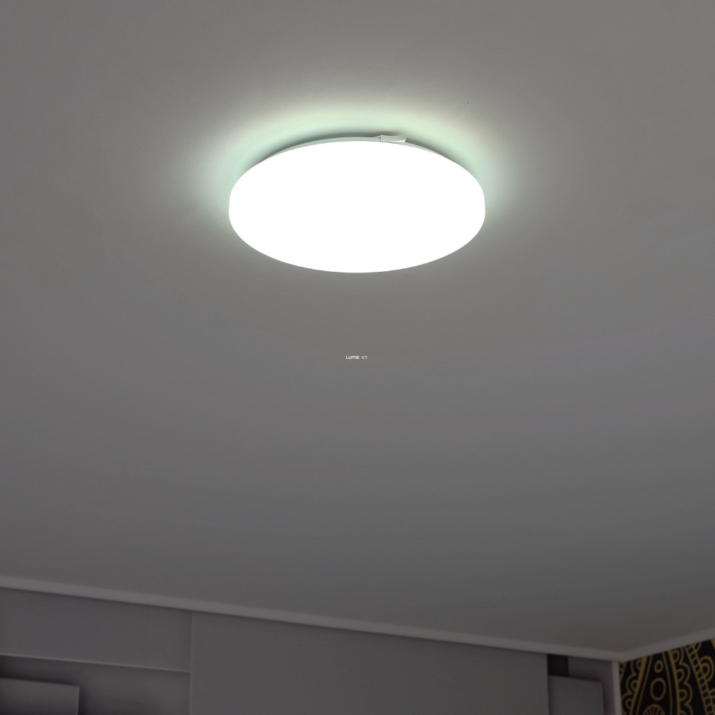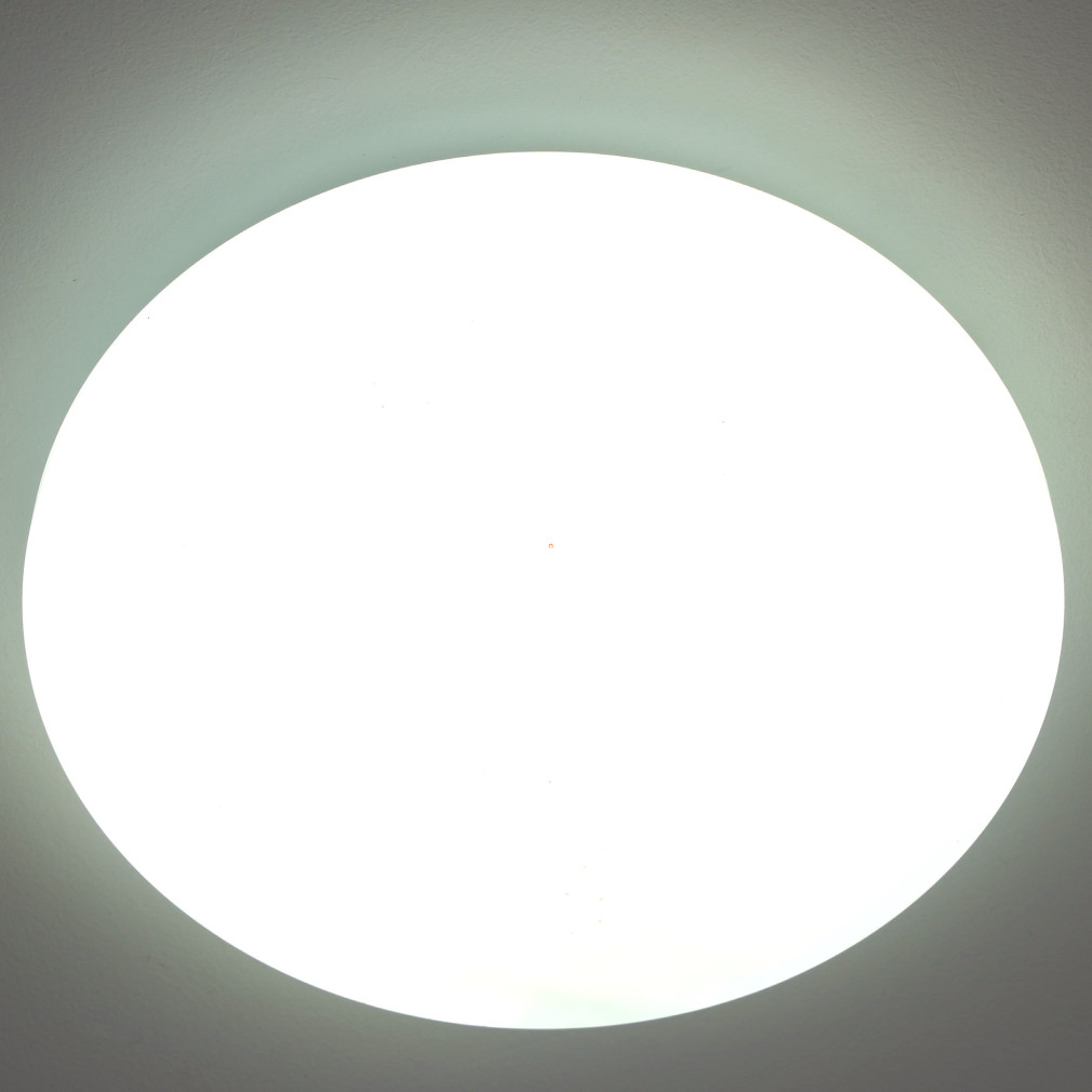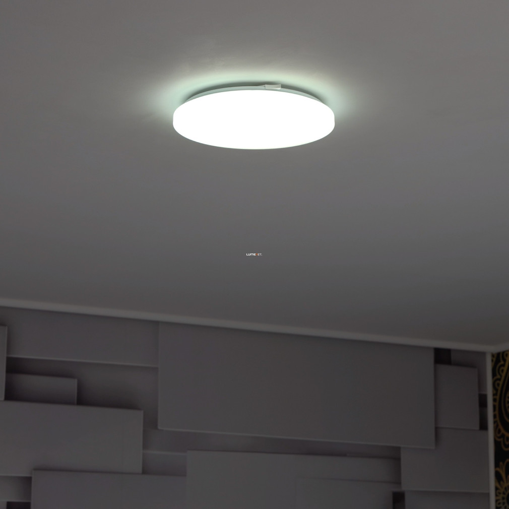 A Frania Eglo 33604 csillám hatású mennyezeti LED lámpa modern kialakítású, kerek formával és fehér színnel rendelkezik. A lámpatest 11,5 watt teljesítményű, beépített LED modullal működik, amely 1100 lumen fényáramot biztosít hidegfehér, 4000 kelvines színhőmérsékleten. Az IP20 védettségi szintű lámpatest műanyag és acél alapanyagokból készült, átmérője 280 mm, magassága 70 mm. A termék nem szabályozható, fényforrást tartalmaz, és kizárólag beltéri használatra alkalmas. A csillám hatású felület különleges vizuális élményt nyújt a helyiség megvilágításához, a modern stílusú kivitel pedig harmonikusan illeszkedik a lakásvilágítási megoldásokhoz.