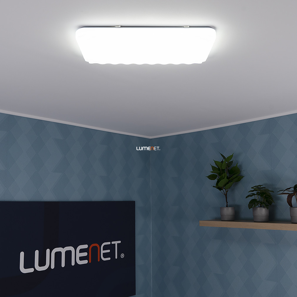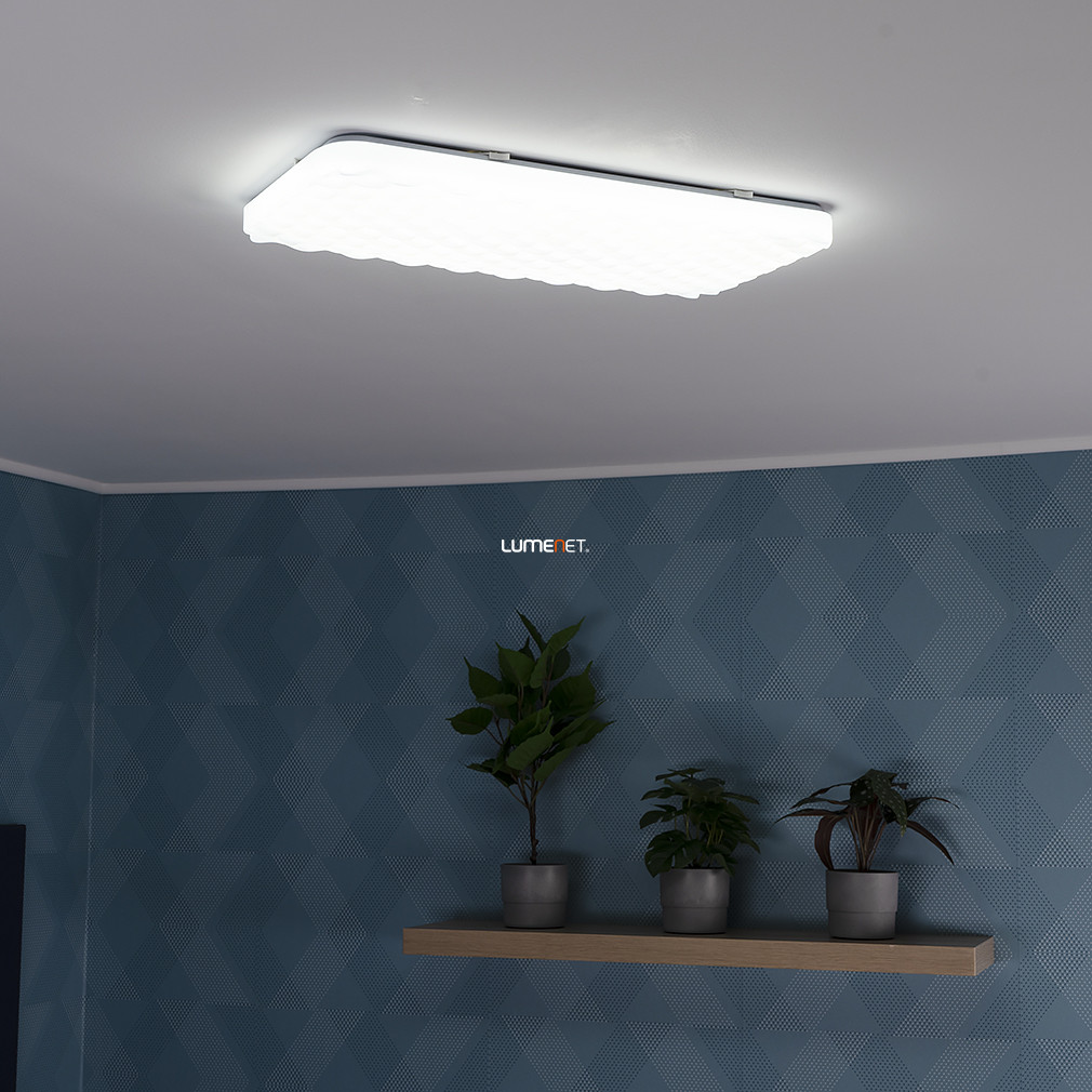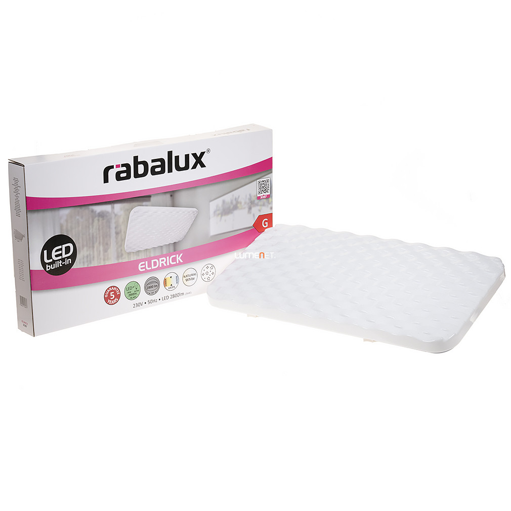 A Csillám hatású mennyezeti LED lámpa, 63,5 cm-es Eldrick Rábalux 3087 modell korszerű megoldást kínál modern otthonok világítására. A lámpatest 36 W teljesítményű integrált LED modullal működik, amely 2800 lumen fényáramot biztosít hidegfehér (4000 K) színhőmérsékleten. A termék IP20 védettséggel rendelkezik, így beltéri használatra alkalmas. A mennyezeti lámpa fehér színű, csillámhatású kivitelben készül, anyaga fém és műanyag, amely hosszú élettartamot és megbízhatóságot garantál. A lámpa nem szabályozható, átlagos élettartama eléri az 50 000 órát. Méretei: hossza 635 mm, szélessége 330 mm, magassága 50 mm. A csomagolás méretei: 68 cm x 7 cm x 38 cm. A lámpa beépített LED fényforrást tartalmaz, foglalat típusa LED modul.