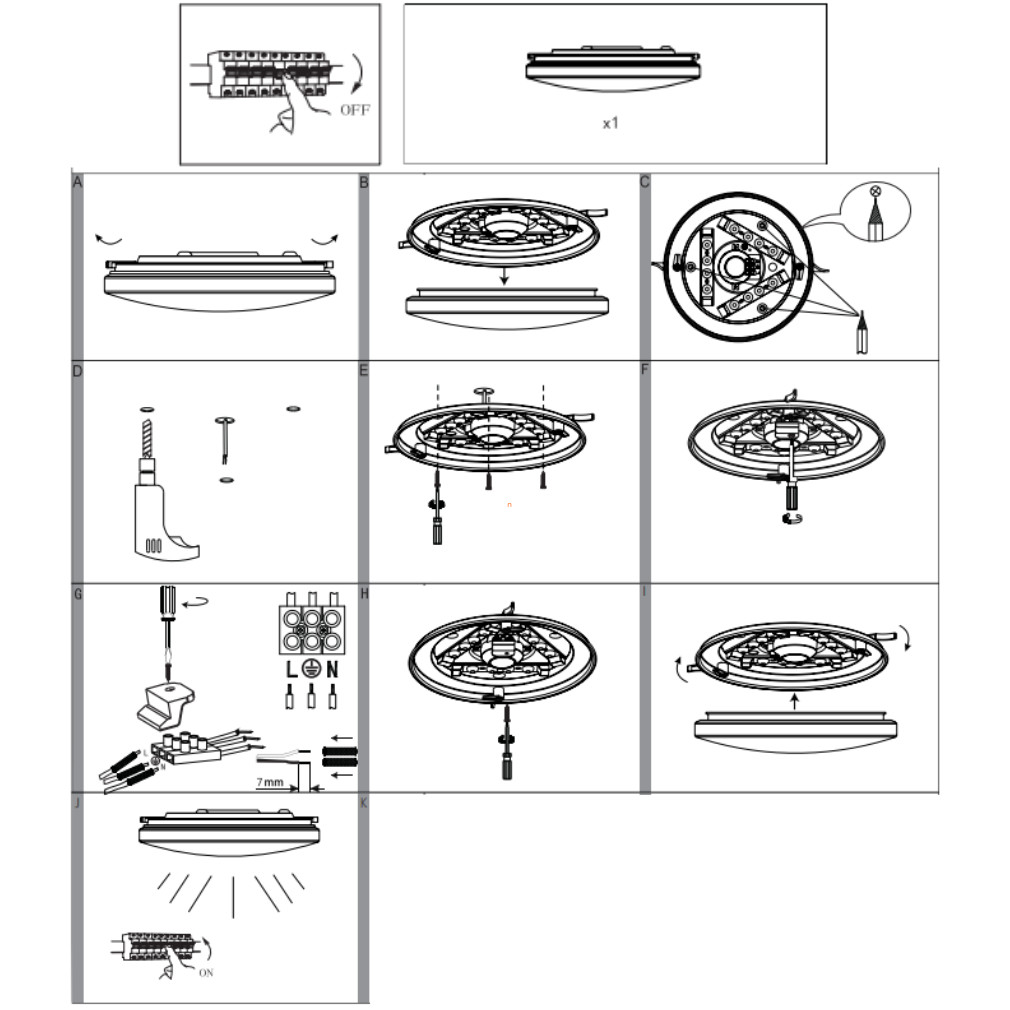 A Frania Eglo 33596 csillám hatású mennyezeti LED lámpa modern megjelenésével és 7,4 W teljesítményű LED moduljával biztosítja a hidegfehér, 4000 K színhőmérsékletű megvilágítást. A lámpatest 700 lumen fényáramot kínál, amely ideális általános világítási feladatokra beltéri környezetben. A termék fehér színű, kerek kialakítású, csillám hatású felülettel rendelkezik, amely esztétikailag kiemeli a mennyezetet. A lámpatest anyaga műanyag és acél kombinációja, amely biztosítja a tartósságot és a könnyű súlyt, mindössze 0,37 kg. A lámpa átmérője 220 mm, magassága 55 mm, a védettségi besorolása IP20, így kizárólag beltéri használatra alkalmas. A fényforrás beépített LED modul, amely nem szabályozható, hosszú élettartamot és alacsony energiafogyasztást kínál. A terméket az EGLO gyártja.