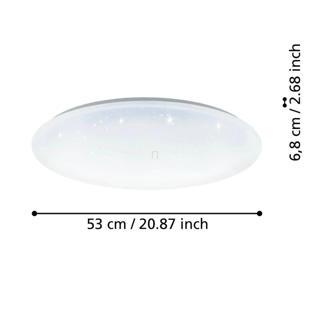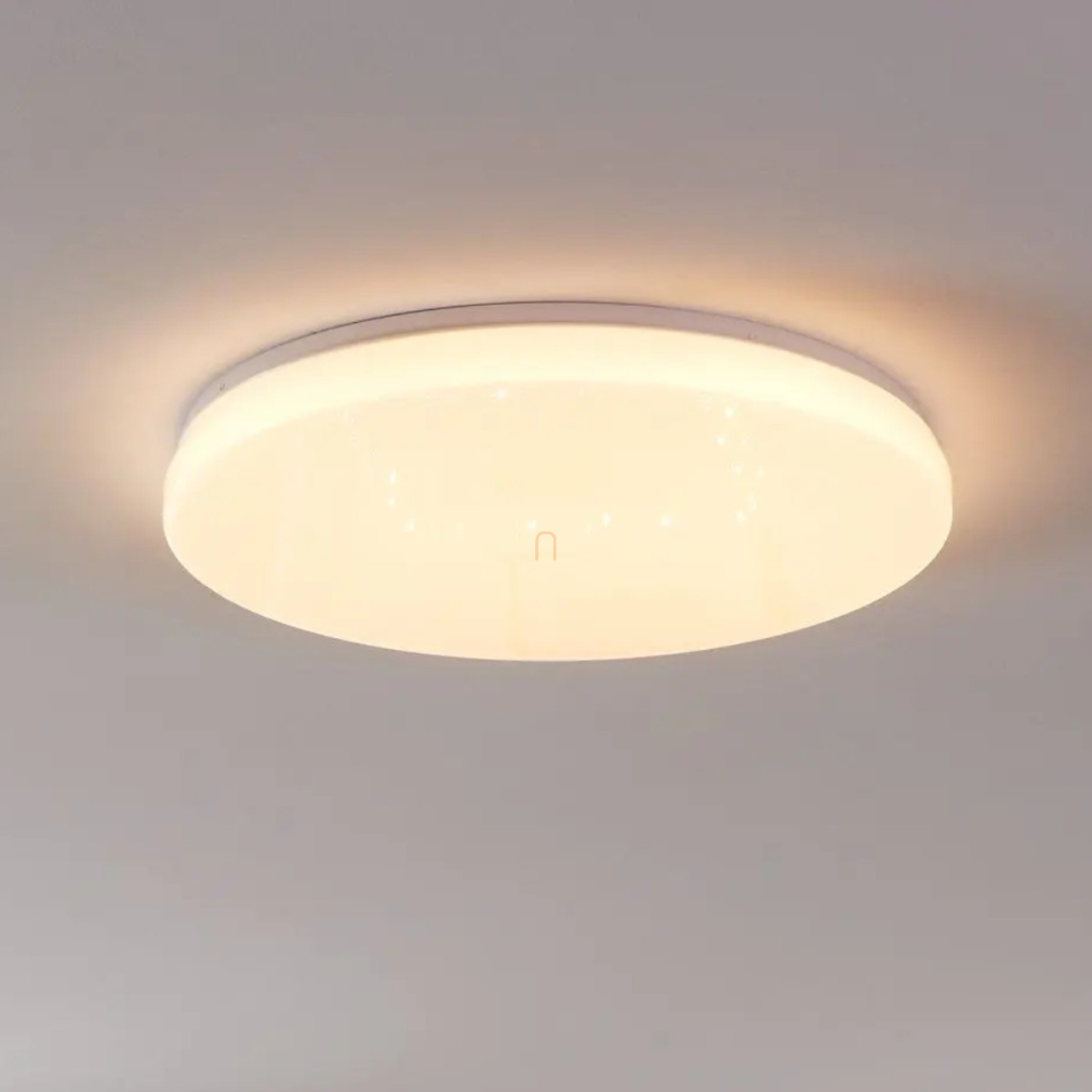 A Totari Eglo 900002 csillám hatású mennyezeti LED lámpa modern technológiával készült, amely négy darab 11,2 wattos LED modullal összesen 4960 lumen fényáramot biztosít. A lámpatest fényének színhőmérséklete 2700 és 6500 Kelvin között szabályozható, lehetővé téve a hideg és melegfehér árnyalatok közötti fokozatmentes váltást. Az intelligens vezérlés applikáción vagy opcionálisan elérhető távirányítón keresztül történik. A lámpa fehér színű, csillám hatású kivitelben készül, acél és műanyag anyagok felhasználásával, 53 cm átmérővel és 7 cm magassággal. A beépített LED modulok hosszú élettartamot és energiahatékony működést nyújtanak. A termék IP20-as védettséggel rendelkezik, beltéri használatra készült. A lámpa gyártója az EGLO.