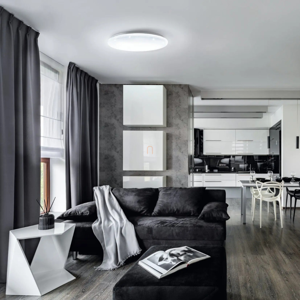 320cm-es belmagasságnál jobb választás lehet egy függesztett lámpa. Amennyiben megjelenésében az idegen, úgy a nagyobb magasság miatt nagyobb fényáramra is van szükség. Bár a korrekt választ sok körülmény befolyásolná, függesztett lámpa esetén 6-7000lm-es maximális fényáram ajánlott. A szoba mérete miatt az egyenletes fényeloszlás érdekében kiegészítő világításokra (falilámpa, állólámpa, asztali lámpa) is szükség van.