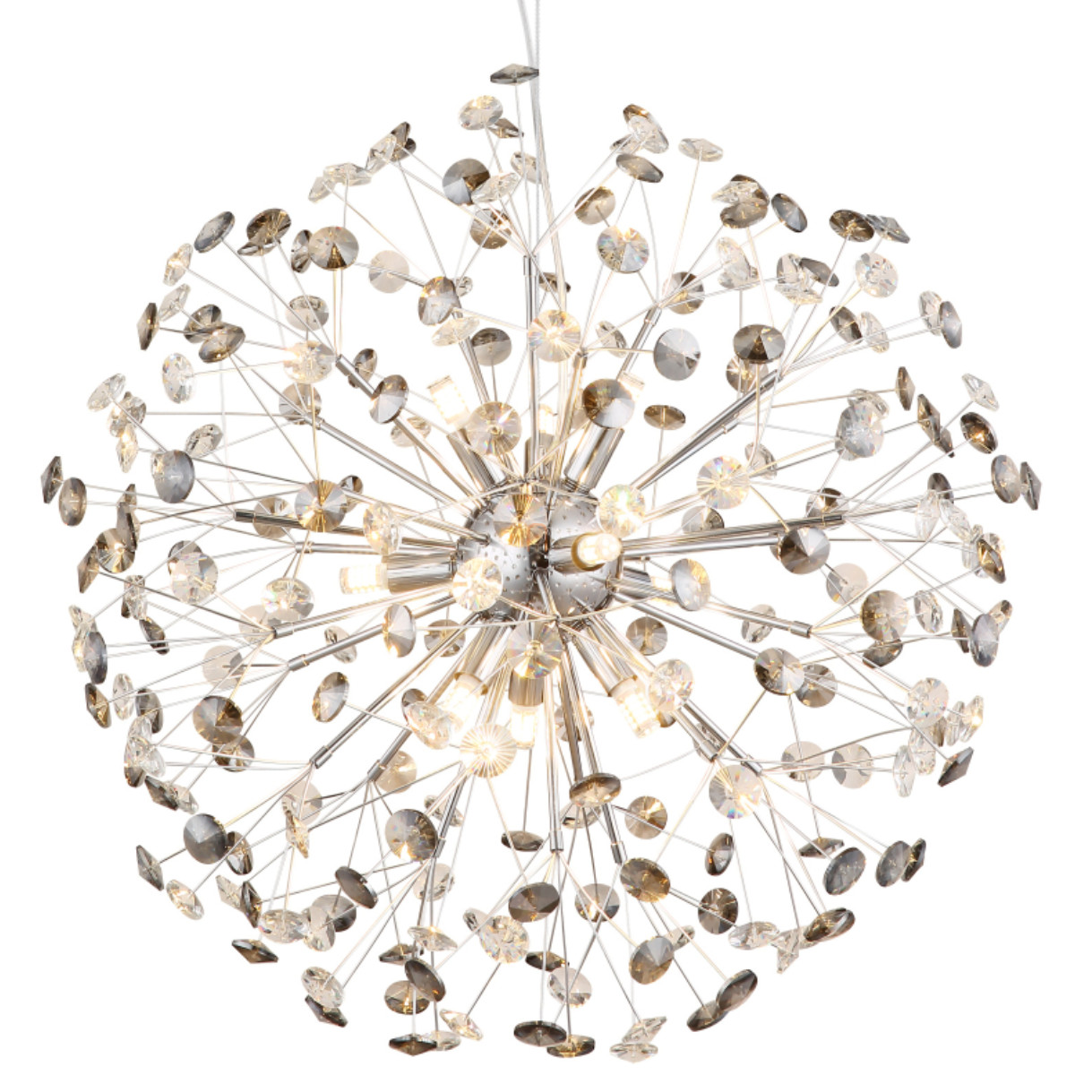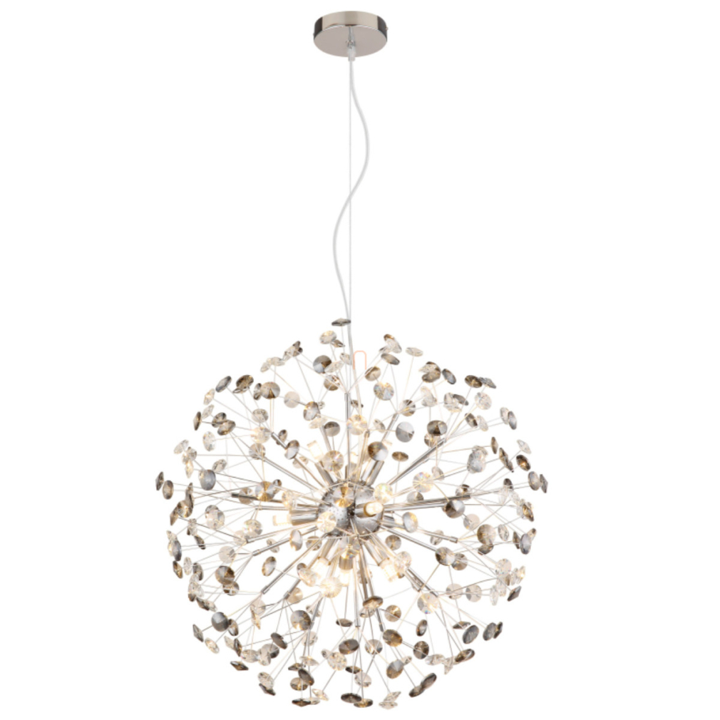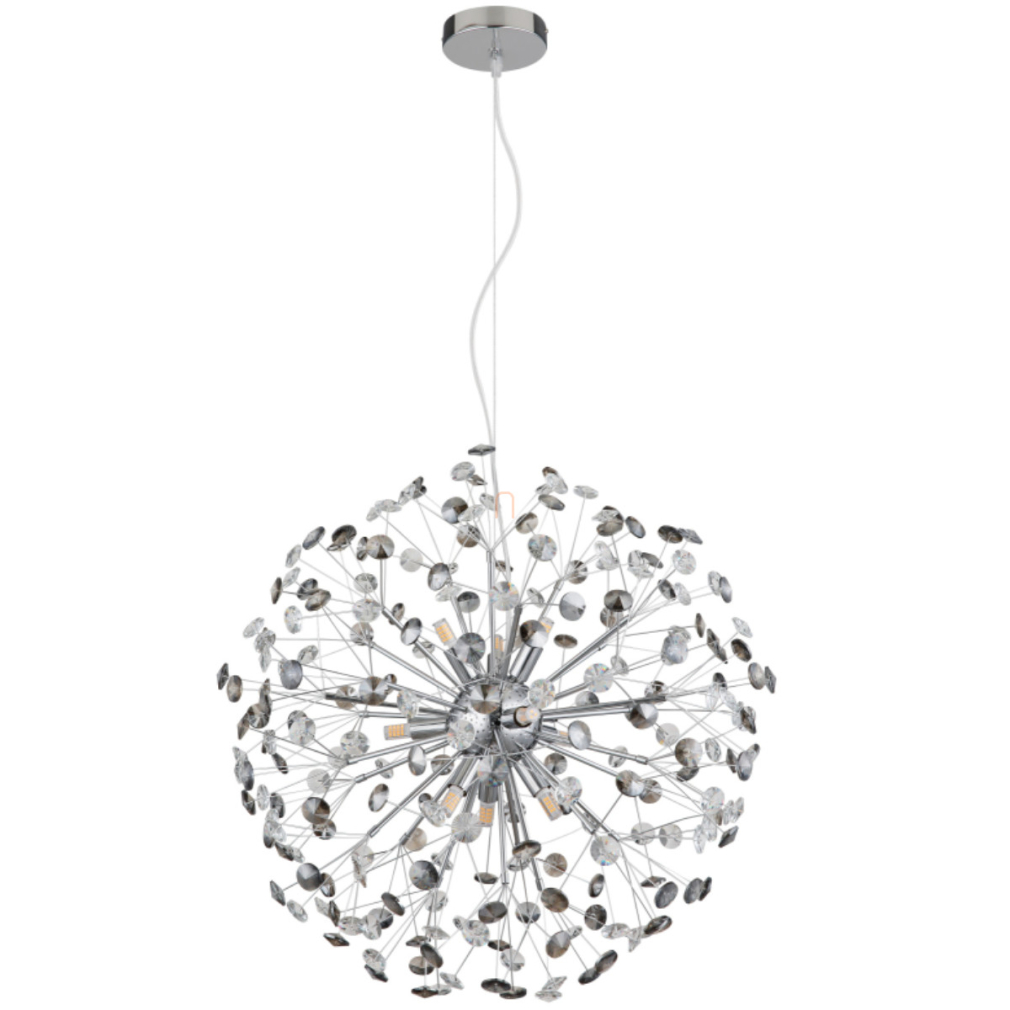 Design függesztett lámpa, kristály pitypang, króm, füstszínű, 60 cm - Katrina Globo 64135H2C
