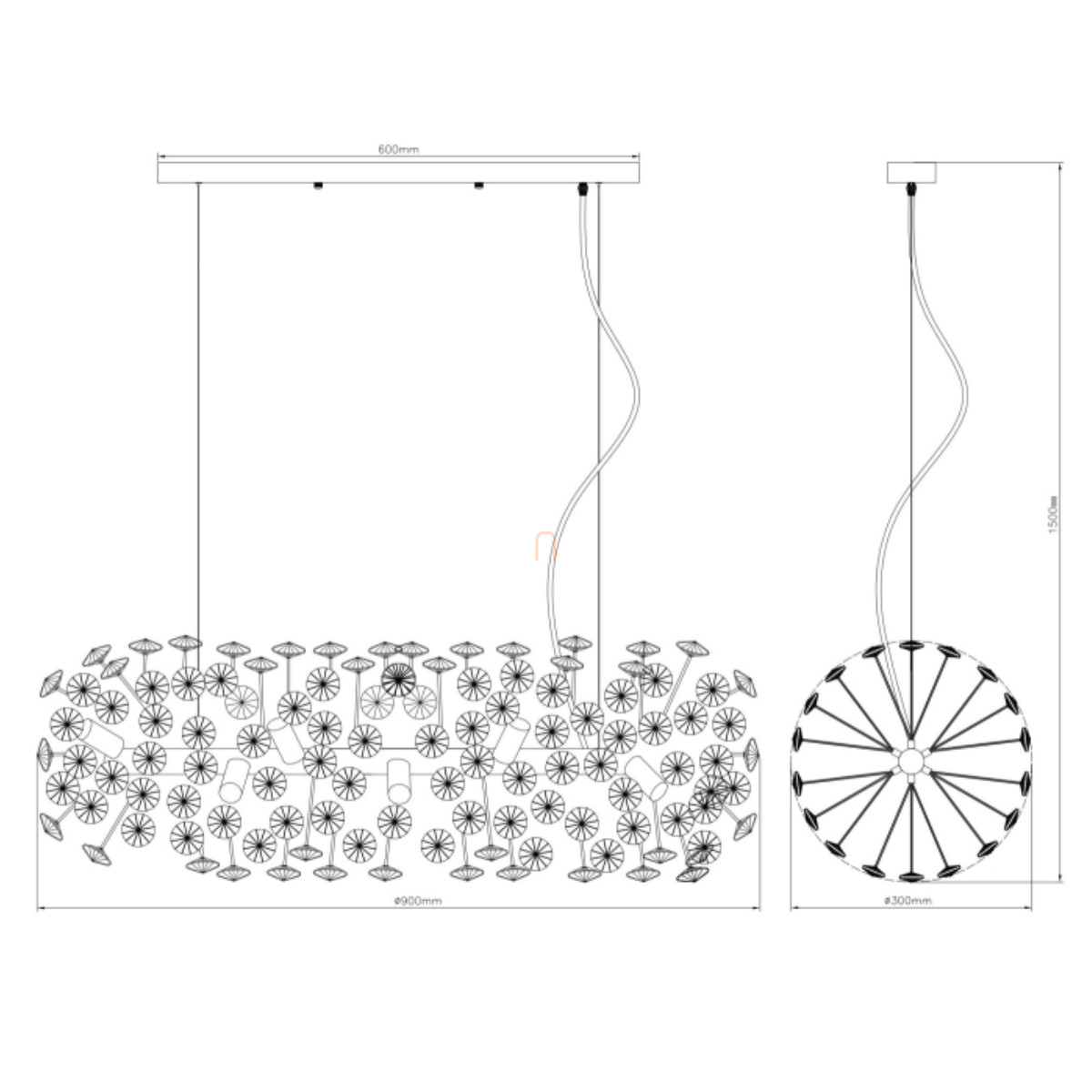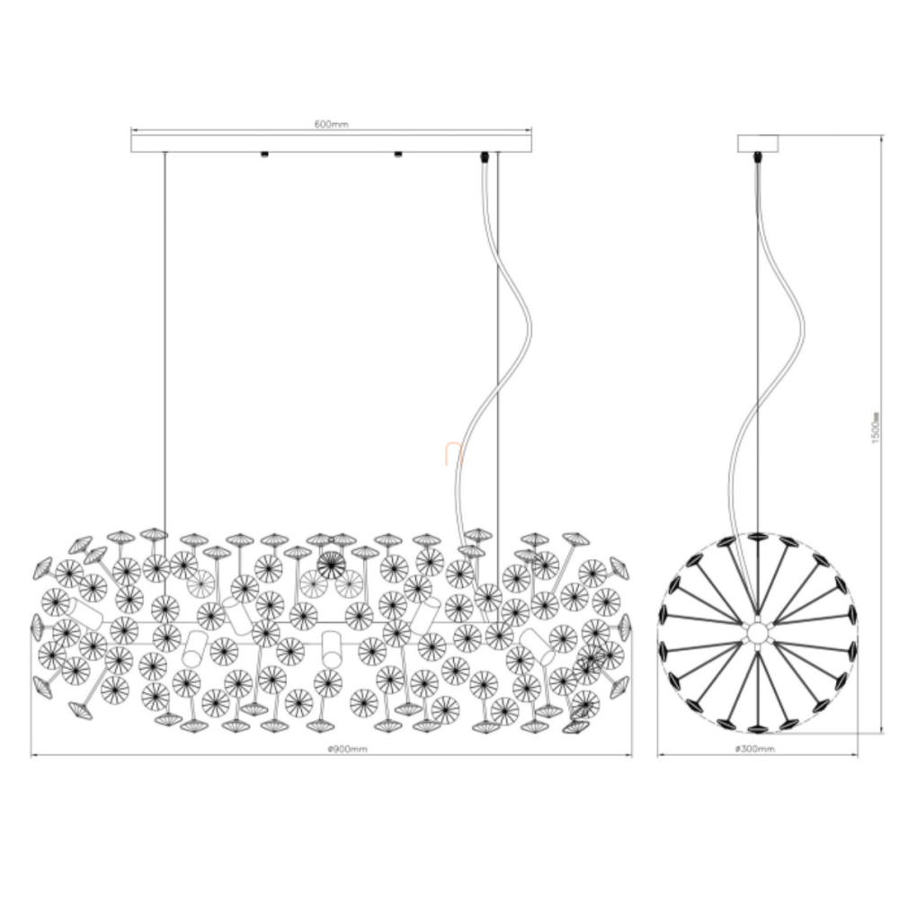 Design függesztett lámpa, kristály pitypang, króm, füstszínű - Katrina Globo 64135H4C