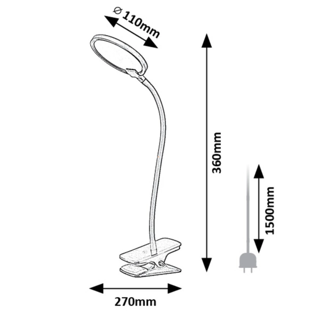Csíptethető LED lámpa 36 cm - Marcin Rábalux 74199, szabályozható fényerősség, érintőkapcsolós, 3000 K, 350 lm, 7 W, 12 V
