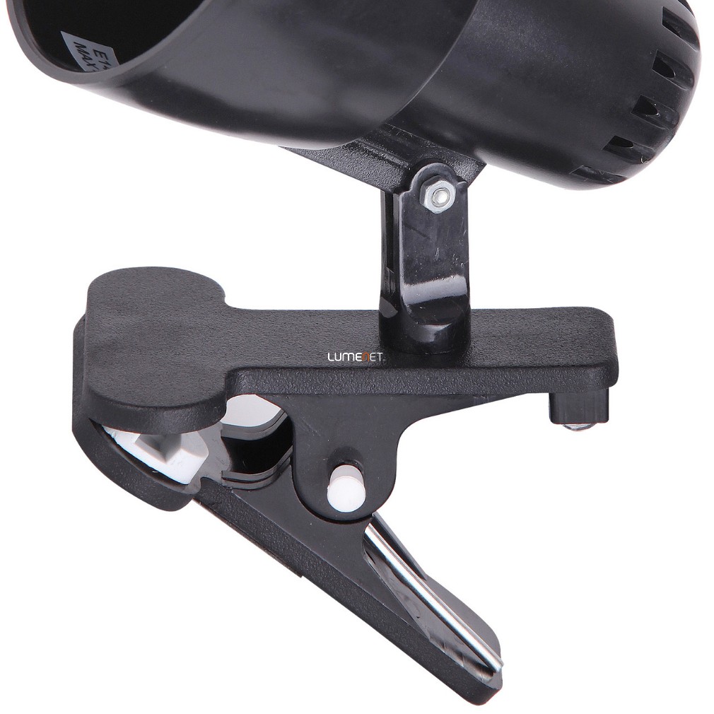 A Rábalux 4357 Clip csíptetős spot lámpa fekete színben, modern stílusban készült, kompakt méretekkel: 150 mm hosszúság, 90 mm szélesség és 105 mm magasság. A lámpatest egy darab E14 foglalattal rendelkezik, amelybe cserélhető fényforrás helyezhető, így a fényáram, színhőmérséklet és teljesítmény a választott izzótól függ. A termék műanyagból készült és IP20 védettségi szinttel bír, beltéri használatra alkalmas. A lámpa zsinórkapcsolóval működtethető, nem szabályozható, a csomag fényforrást nem tartalmaz. A termék tömege 0,22 kg, csomagolási méretei: 25 mm széles, 9 mm hosszú és 30 mm magas. A lámpa gyártója a Rábalux.