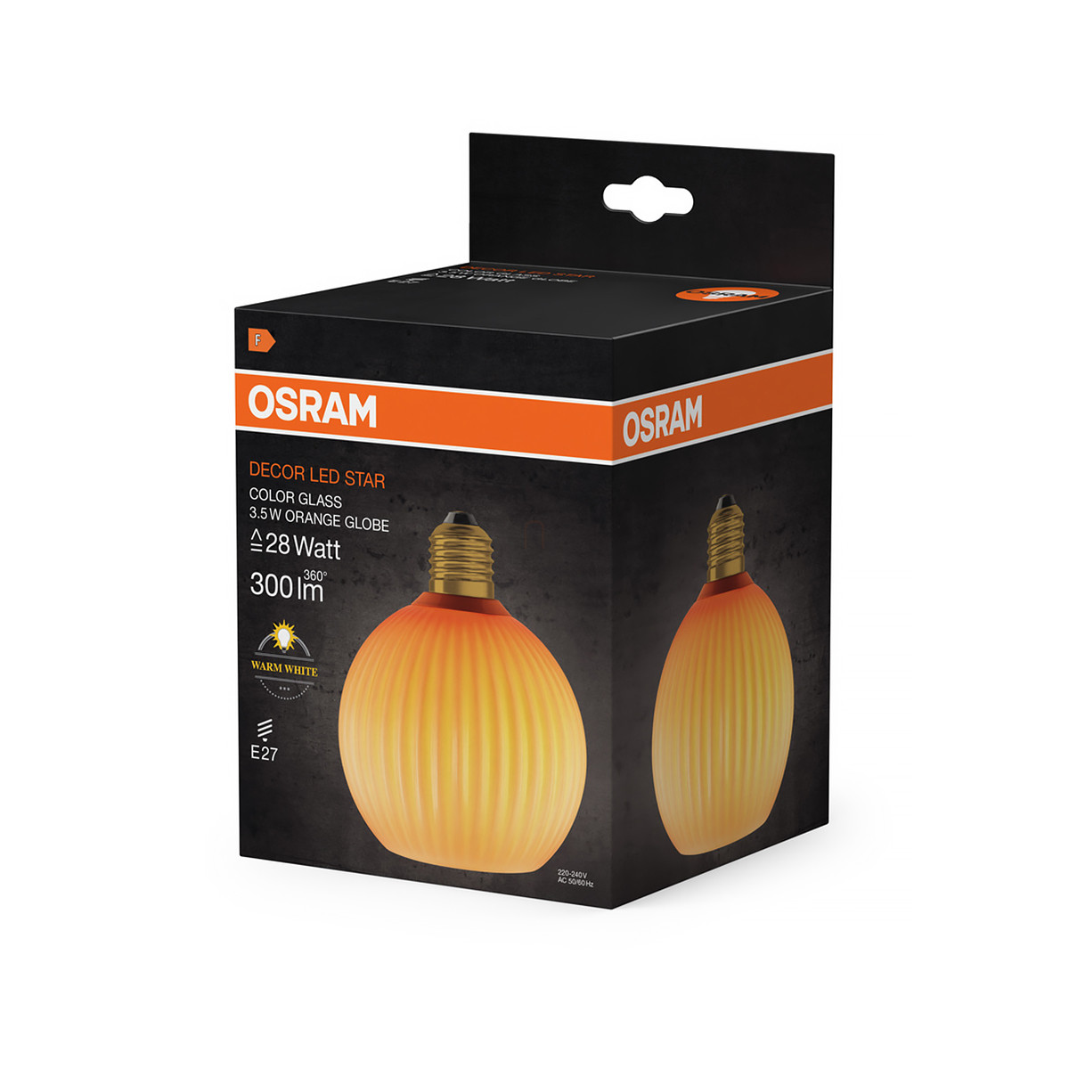 Osram Decor E27 LED design fényforrás, melegfehér fényű, 300 lm, 3,5 W, színezett -bordázott üveg, narancssárga