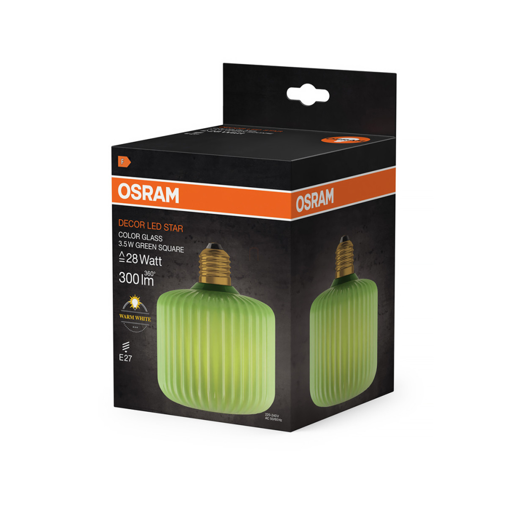 Osram Decor E27 LED design fényforrás, melegfehér fényű, 300 lm, 3,5 W, színezett -bordázott üveg, zöld