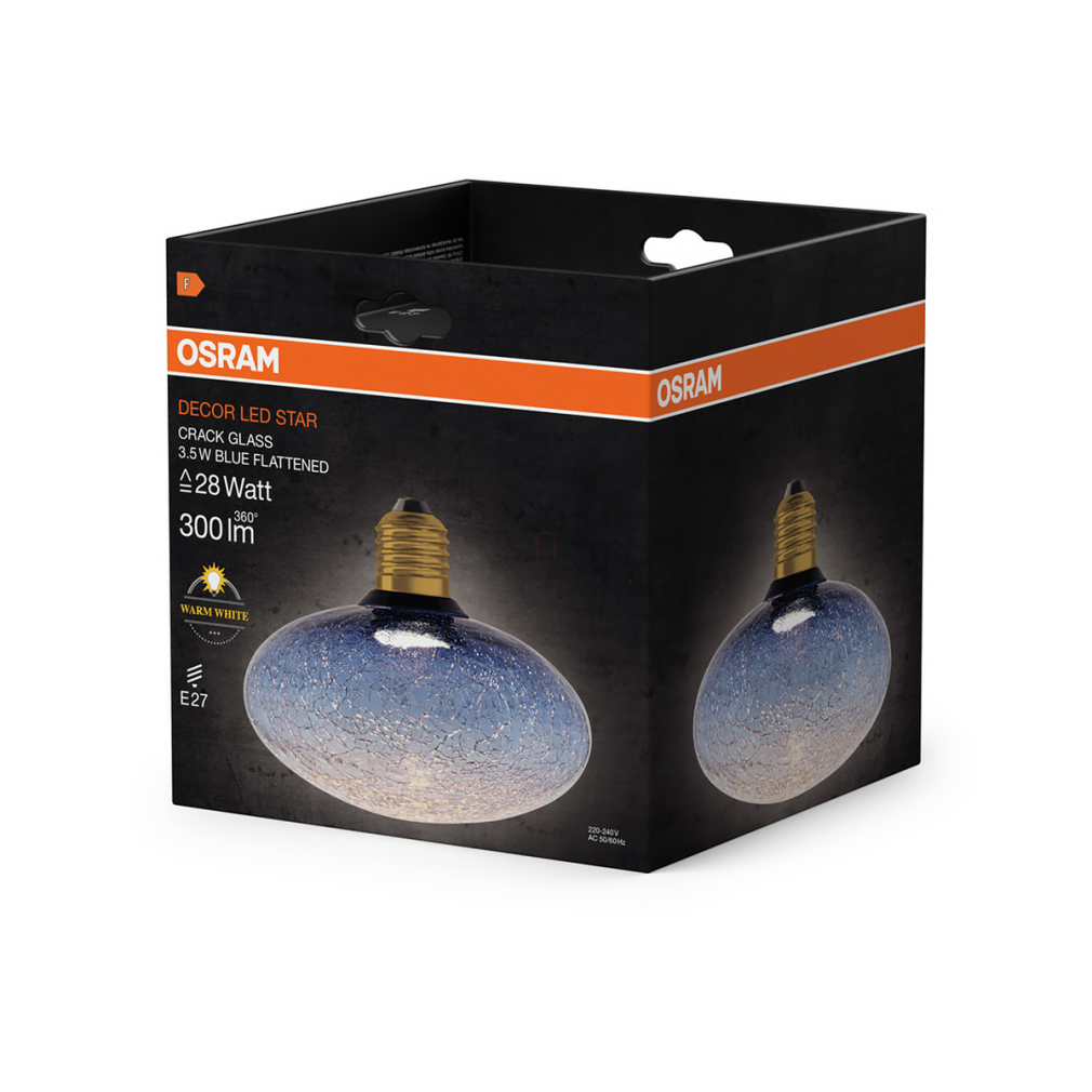 Osram Decor E27 LED design fényforrás, melegfehér fényű, 300 lm, 3,5 W, színezett-roppantott üveg, kék