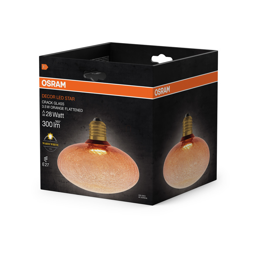 Osram Decor E27 LED design fényforrás, melegfehér fényű, 300 lm, 3,5 W, színezett-roppantott üveg, narancssárga