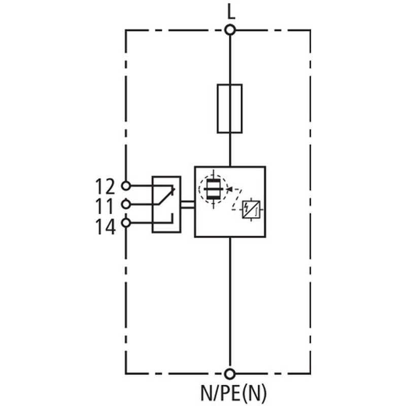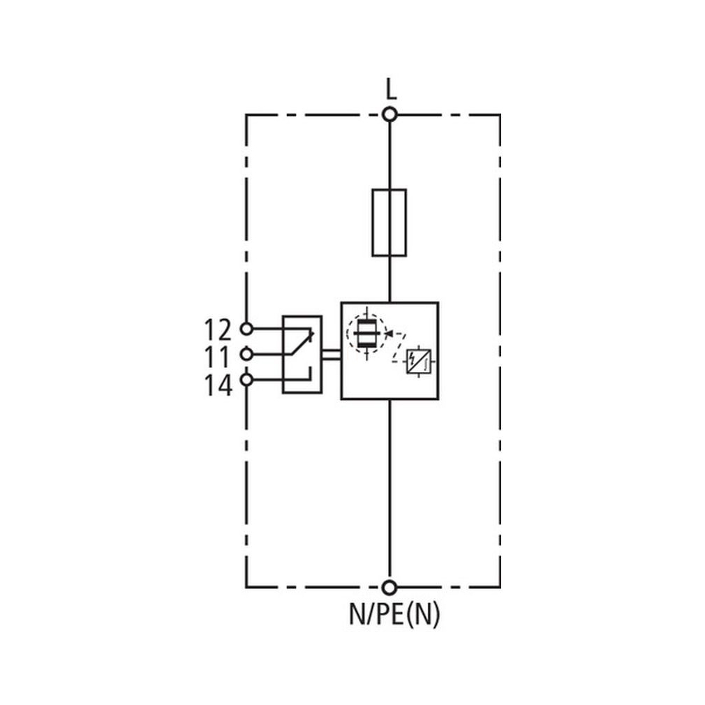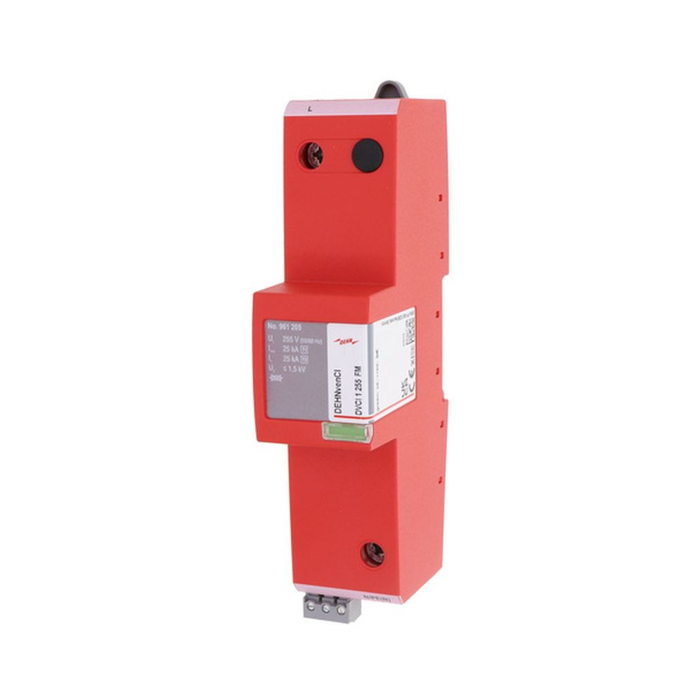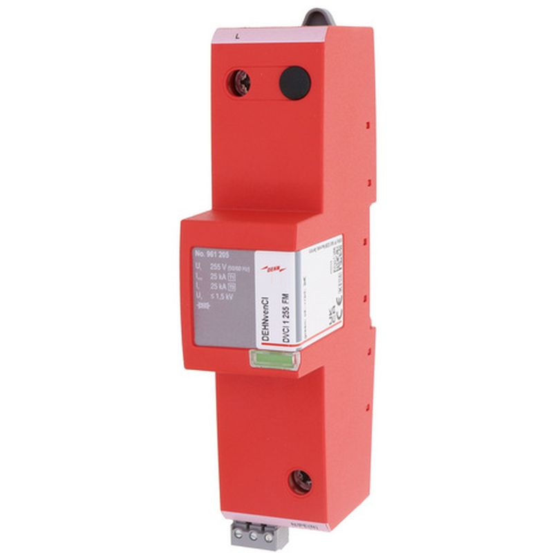 DEHN 1. típusú kombinált villámáram-levezető DEHNvenCI egypólusú 255 V AC beépített előtét-biztosítóval, távjelző érintkezővel 961205 DVCI 1 255 FM