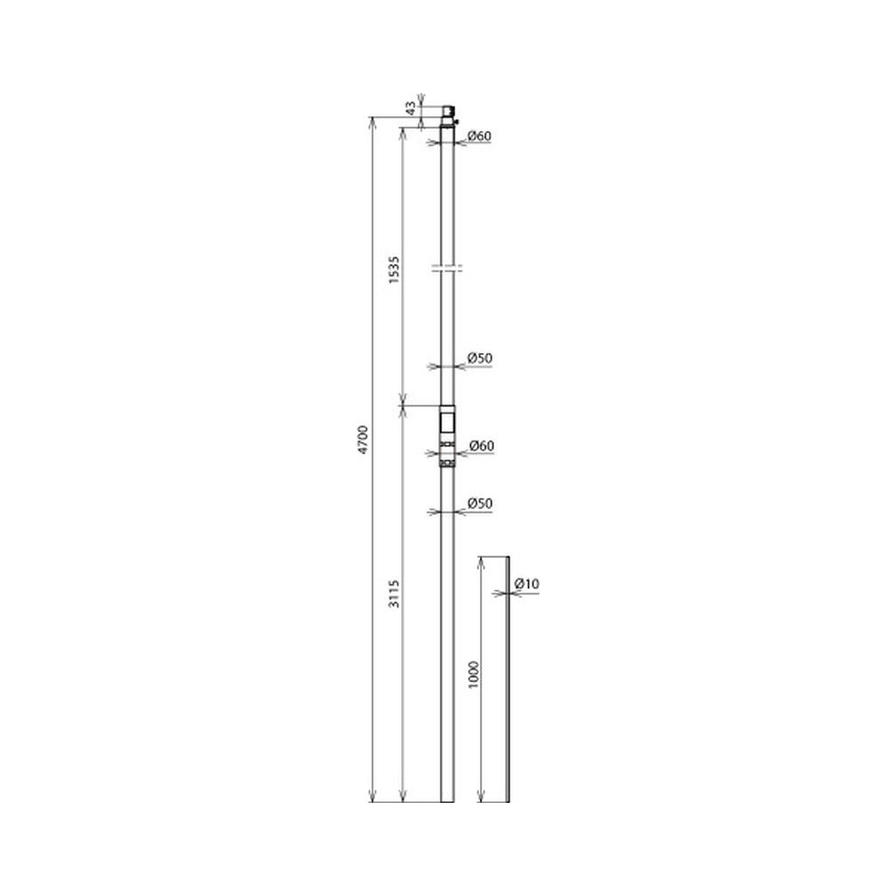DEHN 105332 Támasztócső D 50 mm L 4 700 mm GFK/Al D 10 mm L 1 000 mm felfogócsúccsal SR D50 4700 FSP1000 IP HVI GFK AL