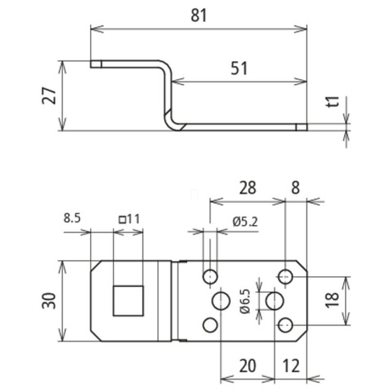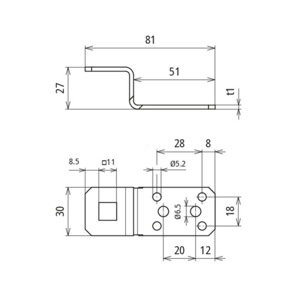 DEHN 377009 Z-alakú csatlakozópánt NIRO D 11 mm-es csatlakozófurat szegecseléshez vagy csavaráshoz AL ZF B11.11 B5.2 6.5 L81 V2A