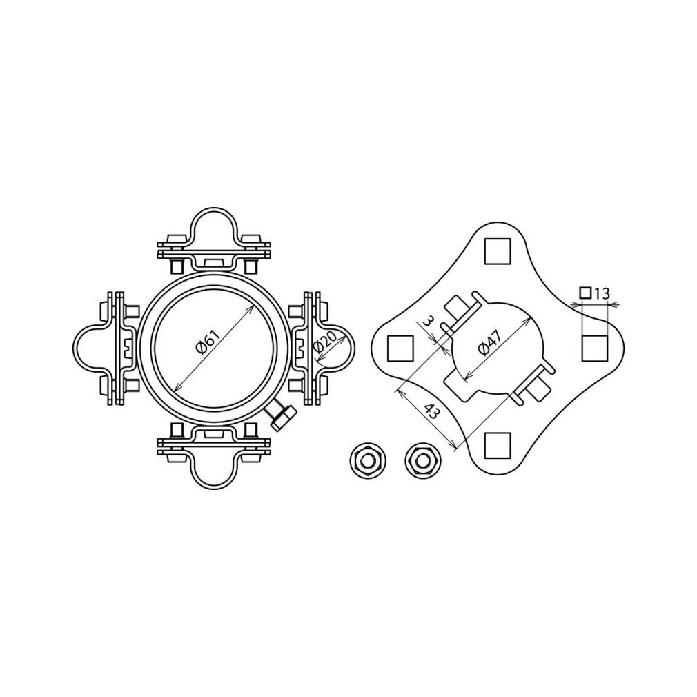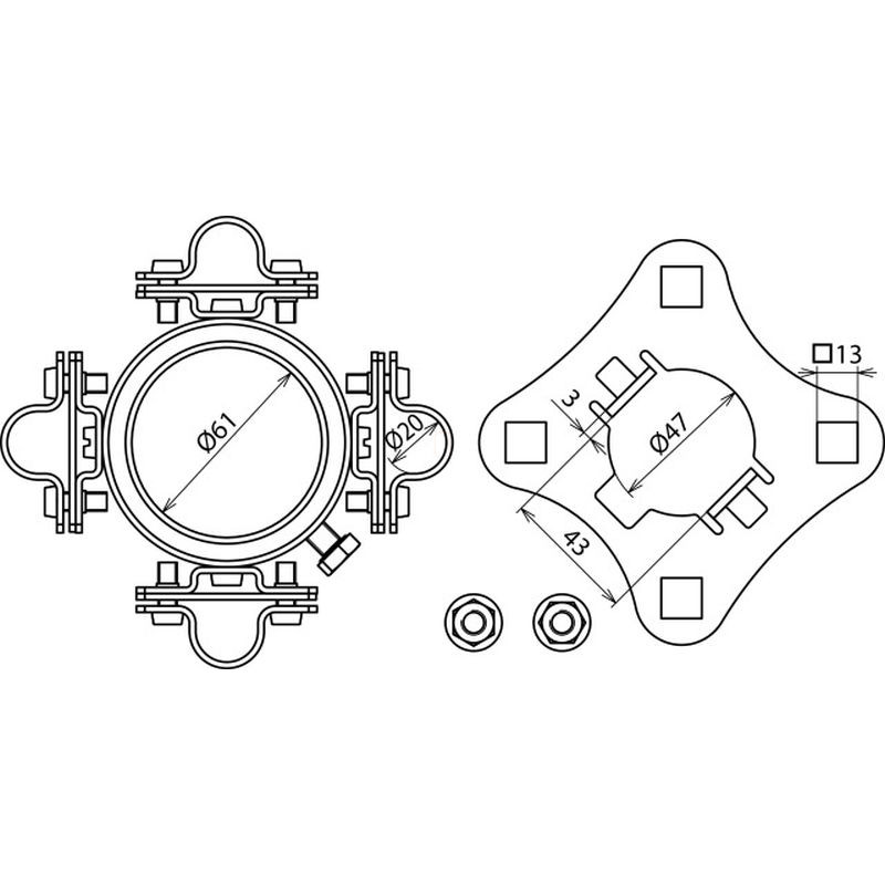Dehn 819294 Rögzítő készlet D 61 mm 4x D 20 mm 4 db támasztócsőn kívül vezetett HVI long szereléséhez