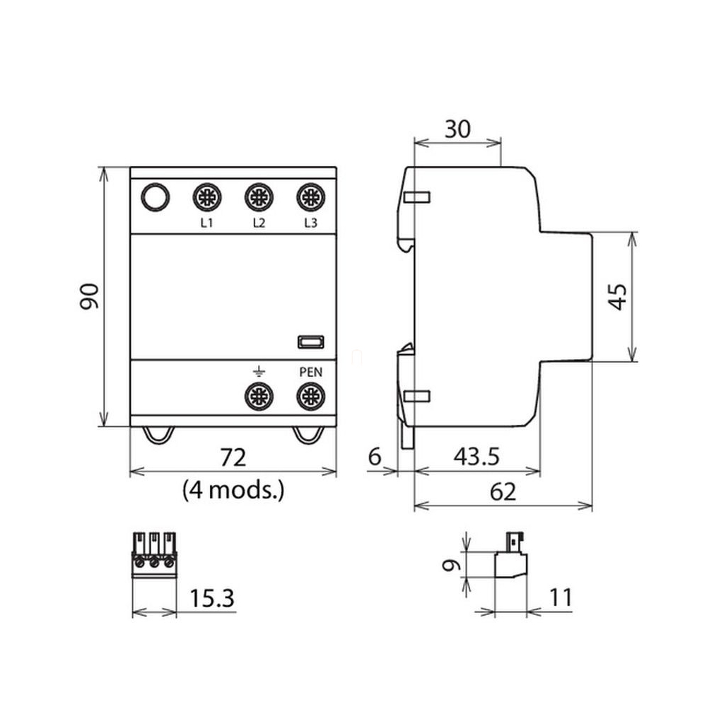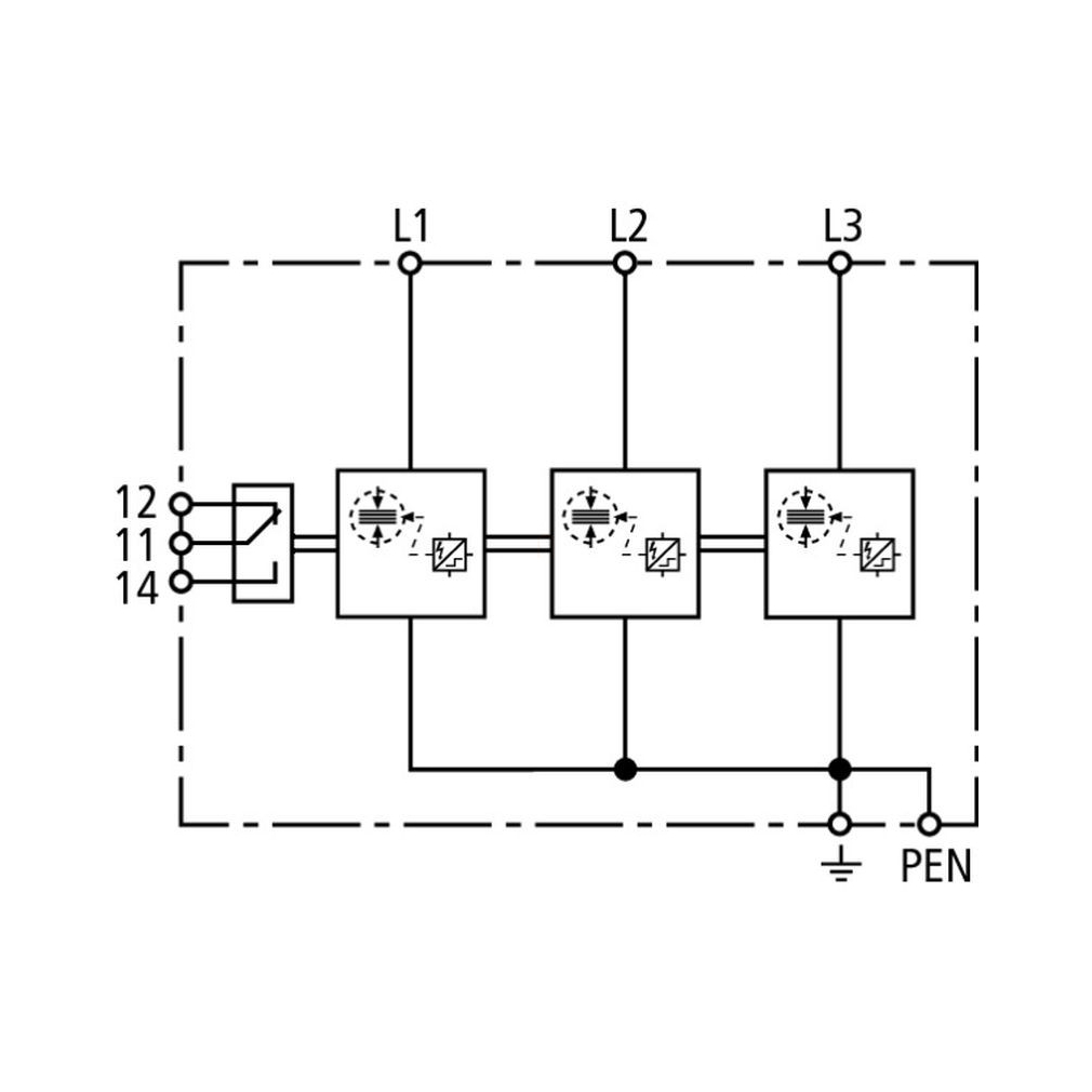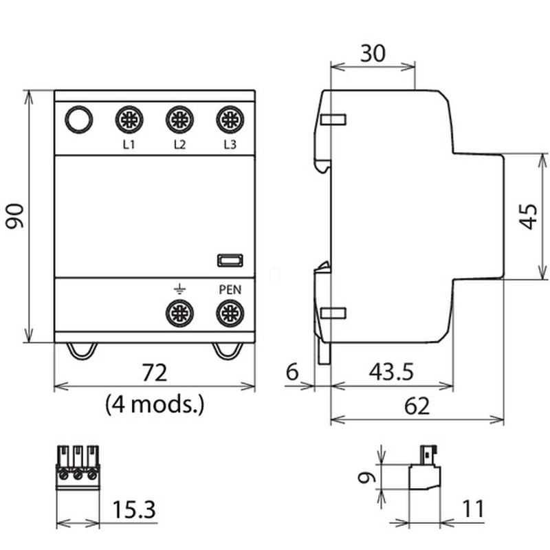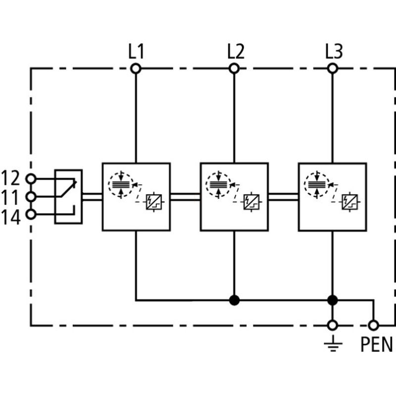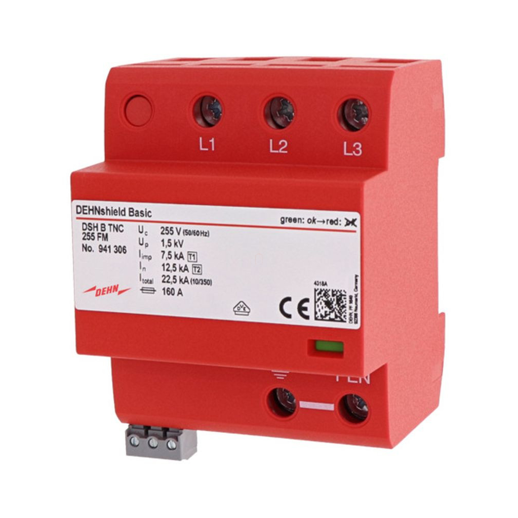 DEHN 941306 Alkalmazásoptimalizált 1.+2. típusú kombinált villámáram-levezető DEHNshield Basic 3fázisú TN-C rendszerhez érintkezővel DSH B TNC 255 FM
