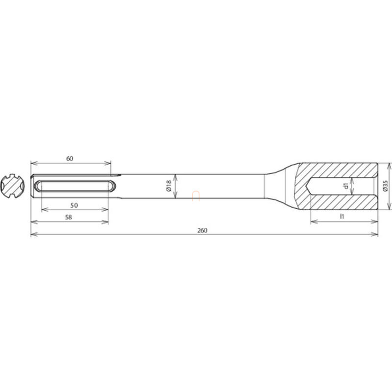 DEHN Kalapácsbetét/beütőfej D 20 mm földelőrudakhoz L 260 mm SDS-max-hoz 620030 HE TE 20 SDS MAX VH STBLANK