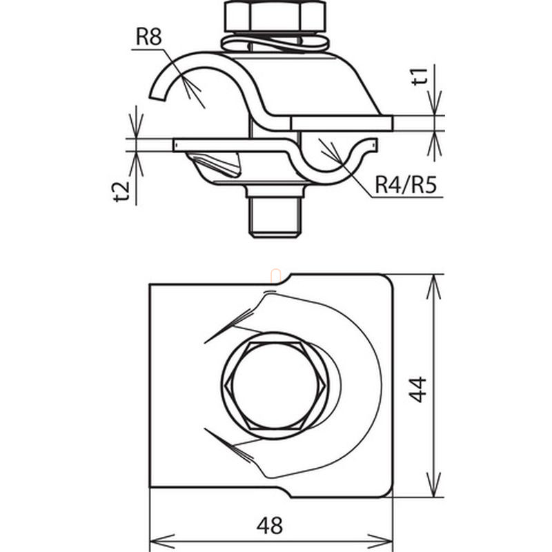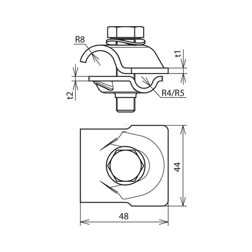 DEHN MV-kapocs St/tZn Rd 8-10/16mm-hez hatlapfejű csavarral és rugós alátéttel, multikapocs 392050 MVK 8.10 16 SKM10X40 FSC STTZN