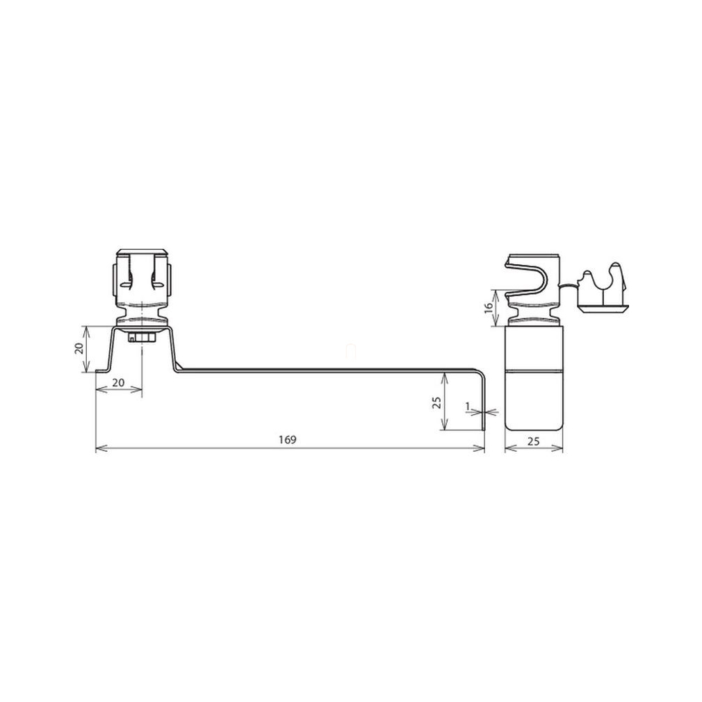 DEHN Tetővezető-tartó DEHNsnap NIRO/műanyag szürke H 16 mm Rd 8 mm-hez hajlított támasztólemezzel 169 mm\n204359\nDLH DS 8 H16 L169 WS V2A