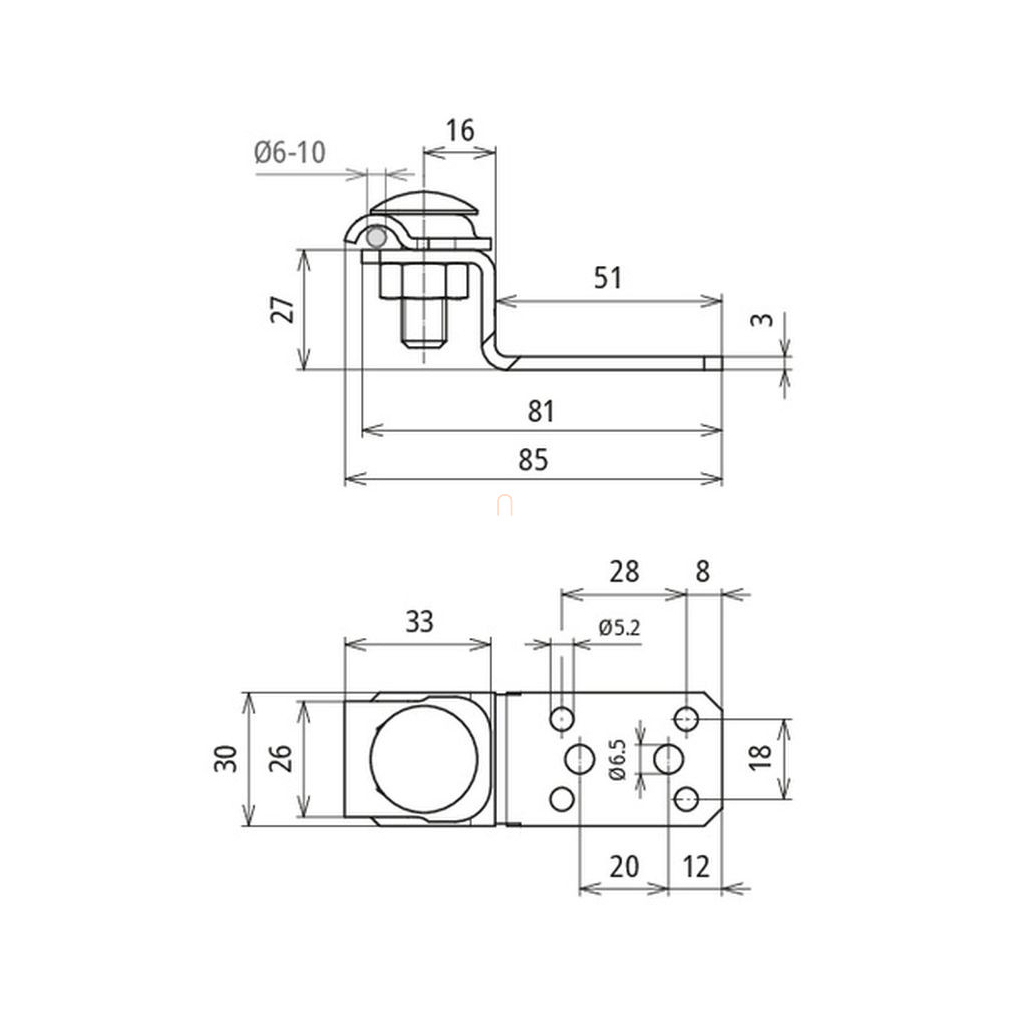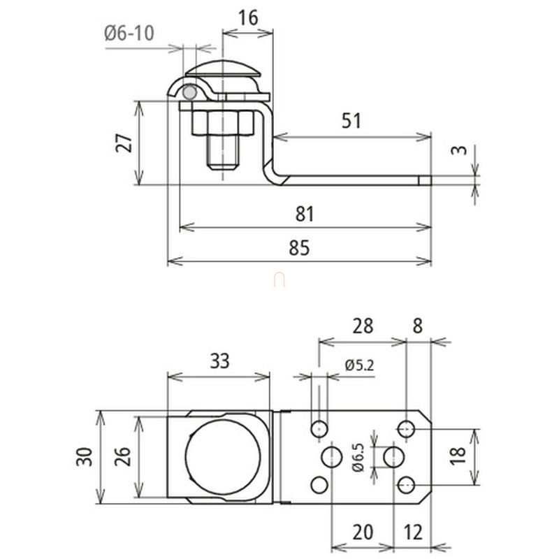 DEHN Z-alakú csatlakozópánt Al kapocsbakkal Rd 6-10mm-hez St/tZn 377100 AL ZF KB 6.10STTZN B5.2 6.5 L81 AL