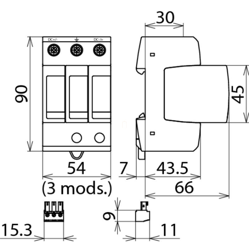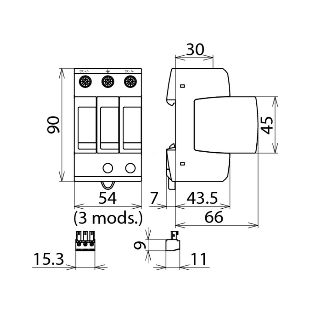 DEHNguard túlfeszültség-levezető napelemes rendszerekhez (2. típus) 1200VDC,távjelző érintkezővel DG M YPV 1200 FM 952565