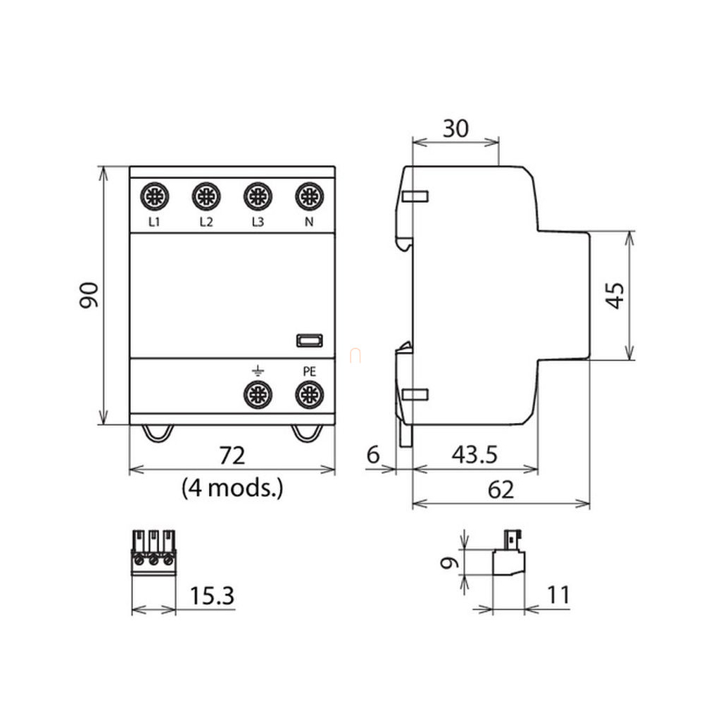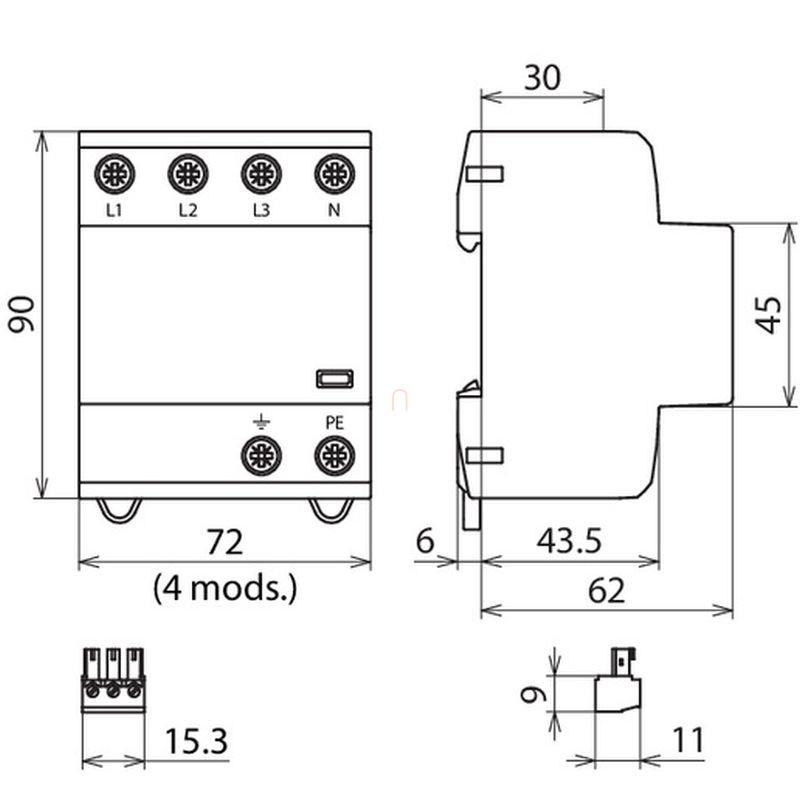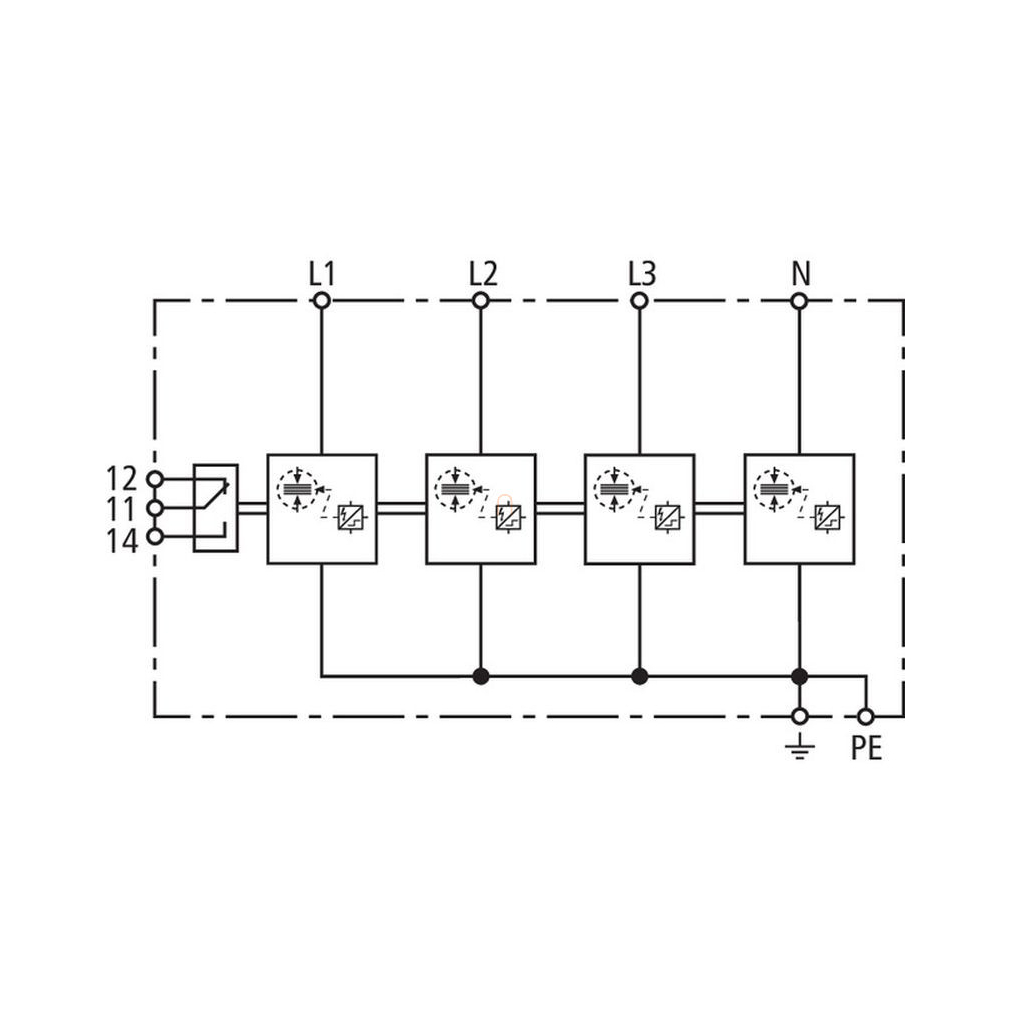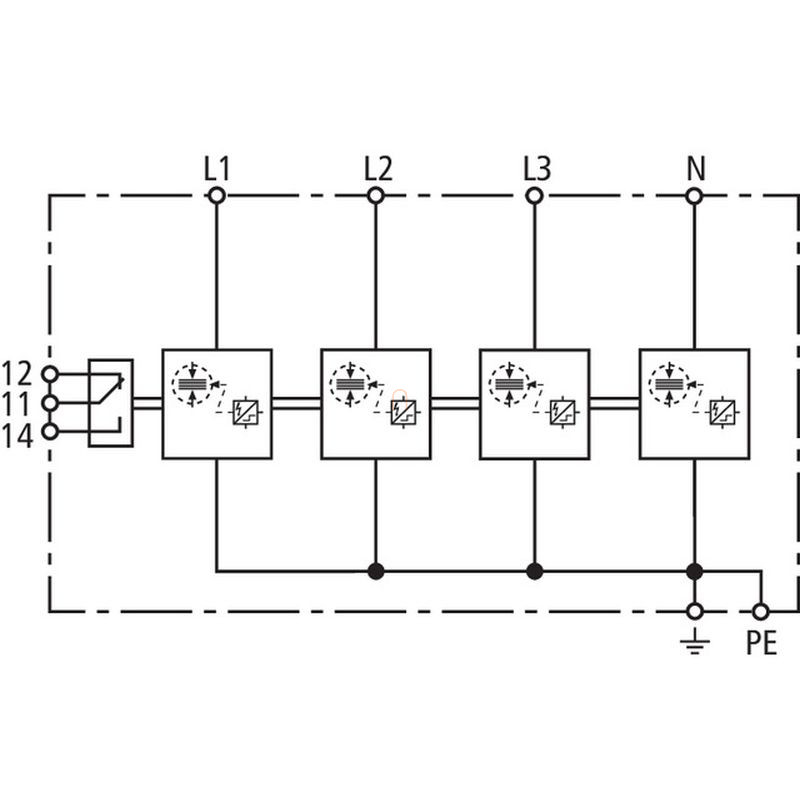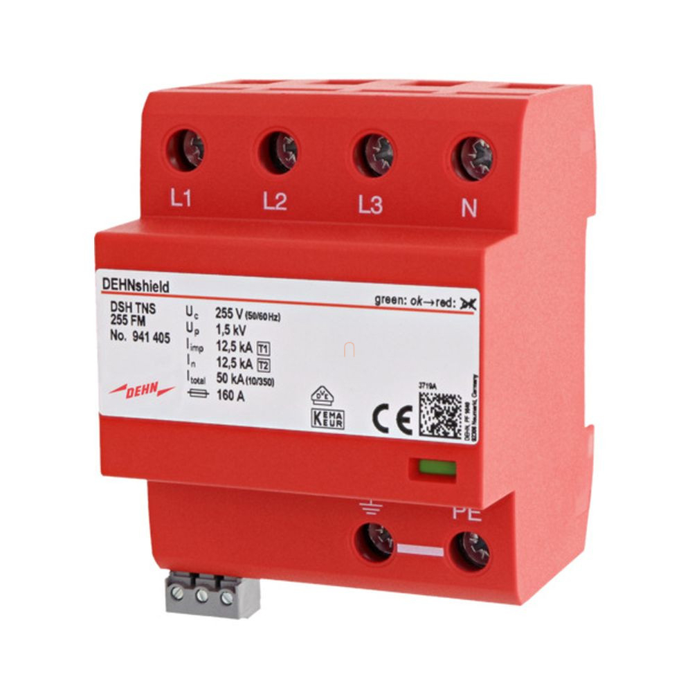 DEHNshield túlfeszültség-levezető 3 fázisú TN-S rendszerhez (1.+2. típus),távjelző érintkezővel DSH TNS 255 FM 941405