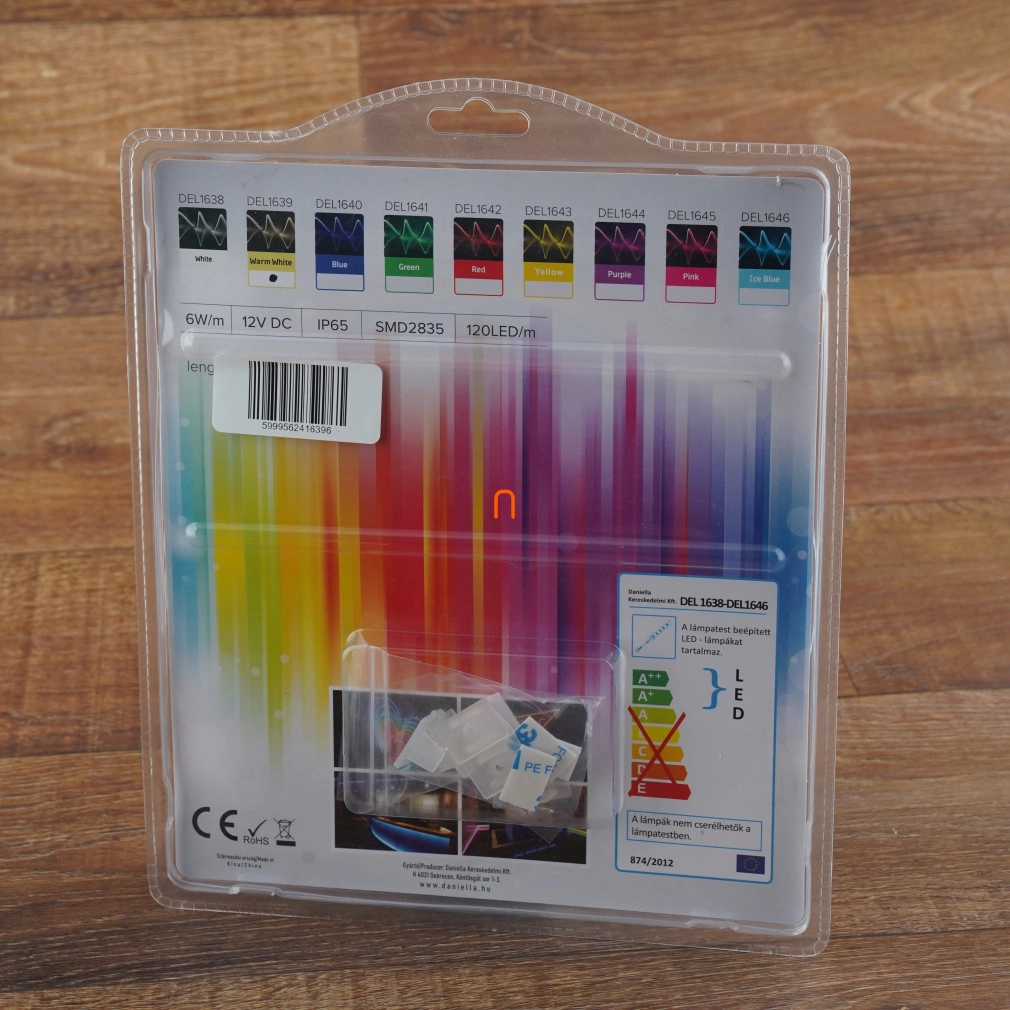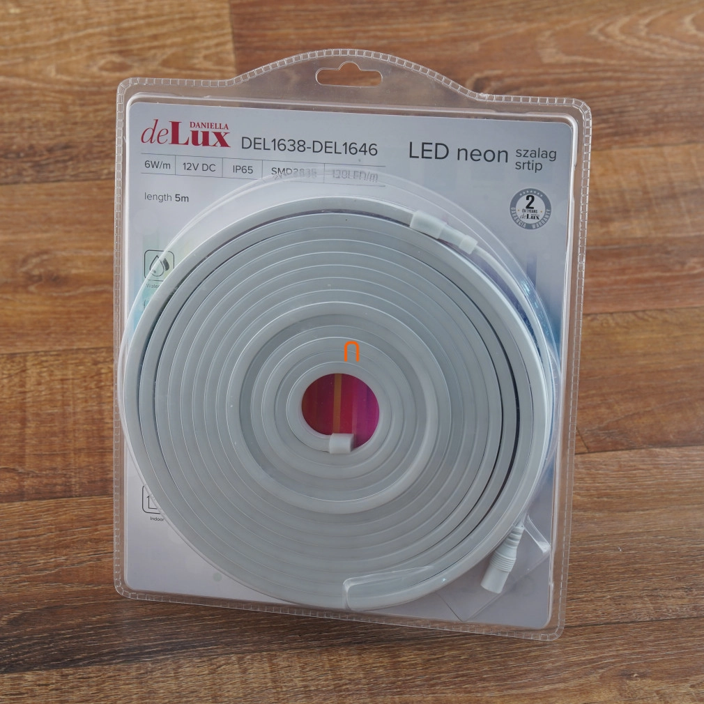 DEL1639 LED szalag neon flex 3000K meleg fehér, 5m, IP65, 12V, 6W/fm, 400lm/m, 120LED/m, SMD2835, delux