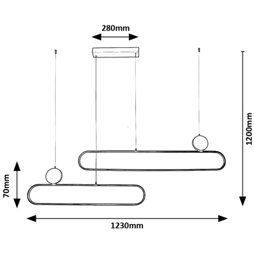 A Circado Rábalux 72268 design függesztett LED lámpa modern lakásvilágítási megoldás, amely 48 wattos teljesítményű beépített LED modullal működik. A lámpatest 2550 lumen fényáramot biztosít, melegfehér, 3000 kelvines színhőmérséklettel, amely kellemes és otthonos fényviszonyokat teremt. A termék fém és szilikon anyaghasználatával, valamint fekete, arany és fehér színváltozataival illeszkedik különböző enteriőrökbe. A lámpa méretei 1230 mm hosszúság, 70 mm szélesség és 1200 mm magasság, ami alkalmassá teszi nagyobb terek megvilágítására is. A 230 V-os névleges feszültségű lámpatest IP20 védettségi szinttel rendelkezik, átlagos élettartama eléri a 20 000 órát. Energiaosztálya G, a csomagolás méretei 6x24x92 cm, tömege 1,5 kg. A terméket a Rábalux gyártja.