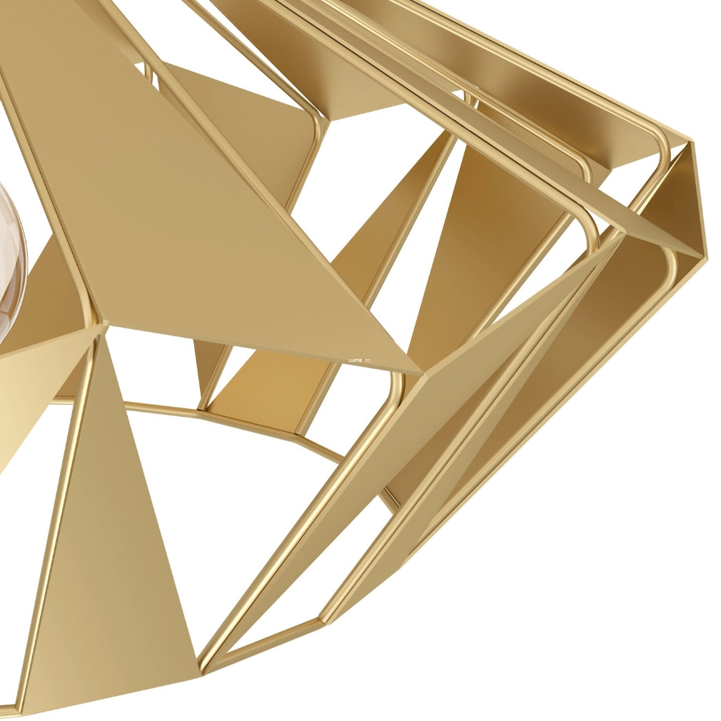 A Carlton Eglo 43908 design mennyezeti lámpa egy modern megjelenésű, arany színű acélból készült világítótest, amely E27-es foglalattal rendelkezik, és egy darab cserélhető fényforrással üzemeltethető. A lámpa nem tartalmaz fényforrást, így a felhasználó saját igényeinek megfelelően választhatja meg a fényáramot, színhőmérsékletet és teljesítményt. A termék átmérője 470 mm, magassága 235 mm, tömege 2,038 kg. Az IP20 védettségi szint beltéri használatra teszi alkalmassá, elsősorban lakásvilágítási célokra. A lámpatest egyedi geometrikus formavilágával és prémium anyaghasználatával esztétikus megoldást kínál a mennyezeti világítás terén. A Carlton Eglo 43908 logisztikai kódja 43908, a gyártó az EGLO.
